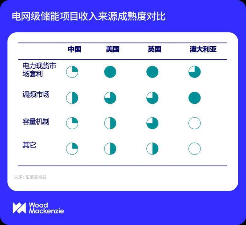 据能源圈了解到,伍德麦肯兹储能研究团队近期发布最新报告Global utility-scale energy storage revenue source comparative analysis,通过对比中国、美国、英国和澳大利亚储能市场发展现状,探究国际经验对于中国储能收入模式的借鉴意义。主要观点摘录如下。