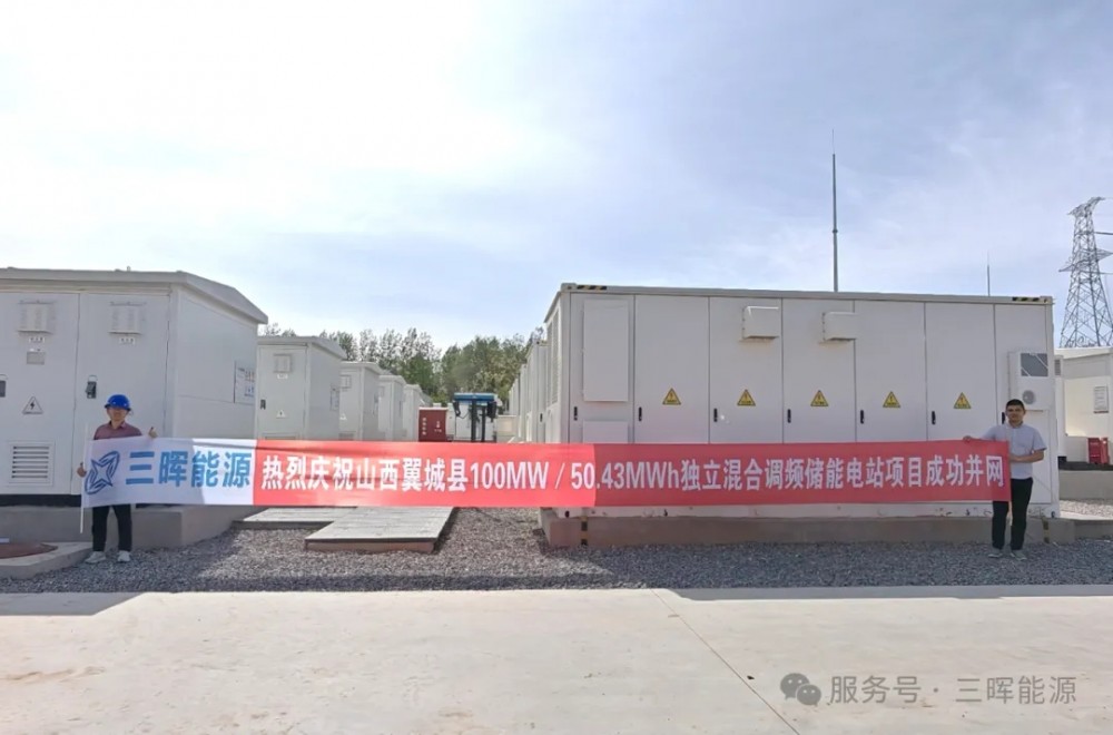 近日,由三晖能源参与建设的山西翼城100MW/50.43MWh独立混合调频储能电站项目成功并网,标志着该项目即将投入运营。