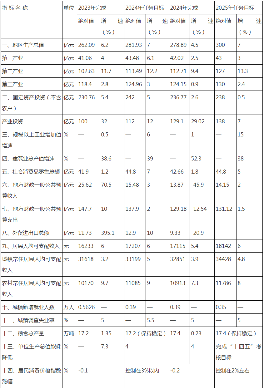怒江州2025年国民经济和社会发展计划主要指标(草案)