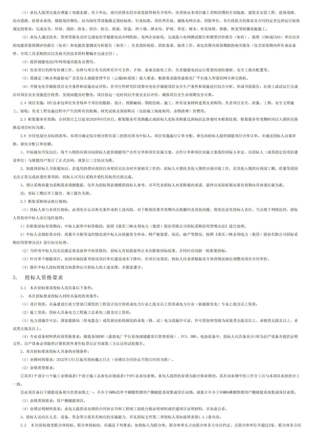 获悉,5月14日,重庆两江长兴电力有限公司2025-2026年用户侧储能项目EPC总承包框架招标公告发布。