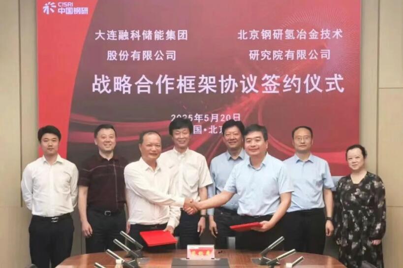 5月20日,大连融科储能集团股份有限公司(以下简称“融科储能”)与北京钢研氢冶金技术研究院有限公司(以下简称“氢冶金院”)在北京签订战略合作框架协议,旨在推动钒电池储能技术与纯氢冶金技术的深度融合,为能源转型注入强大动力。融科储能董事长刘延辉,中国钢研党委常委、副总经理郝晓东出席签约仪式。融科储能集团副总裁张续海,中国钢研氢冶金中心主任、氢冶金院董事长杨光浩代表双方签订框架协议,开启双方合作的新篇章。