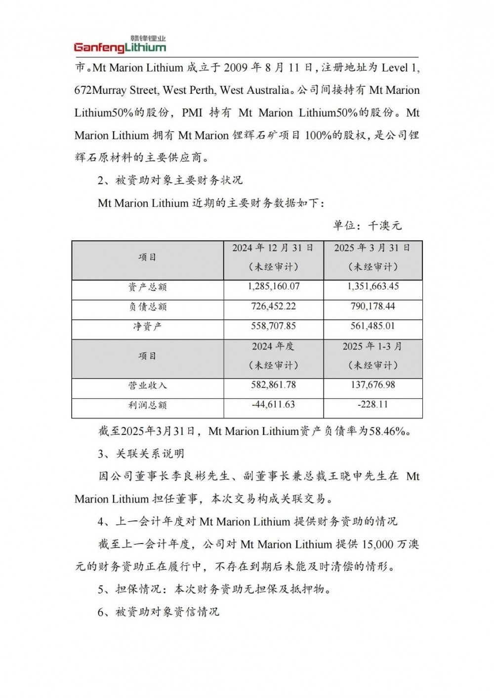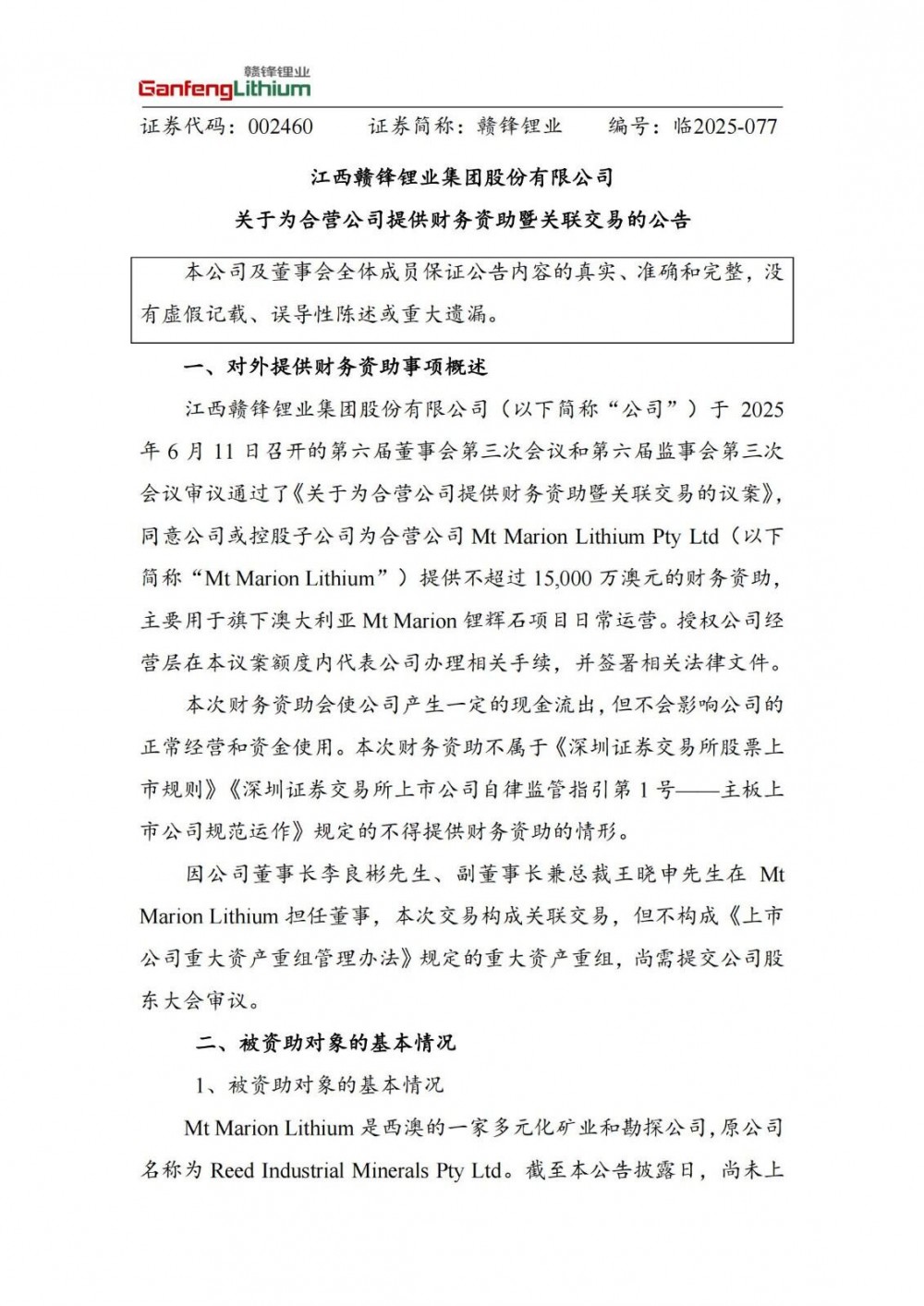 6月11日,赣锋锂业发布公告称,同意公司或控股子公司为合营公司Mt Marion Lithium Pty Ltd提供不超过15,000 万澳元的财务资助,主要用于旗下澳大利亚Mt Marion锂辉石项目日常运营。
