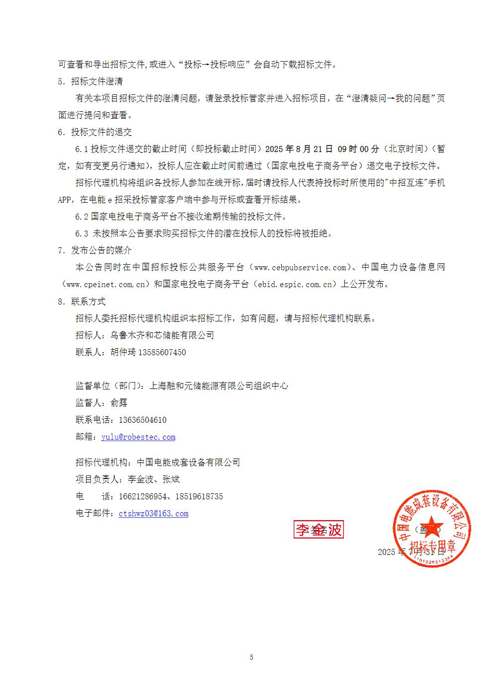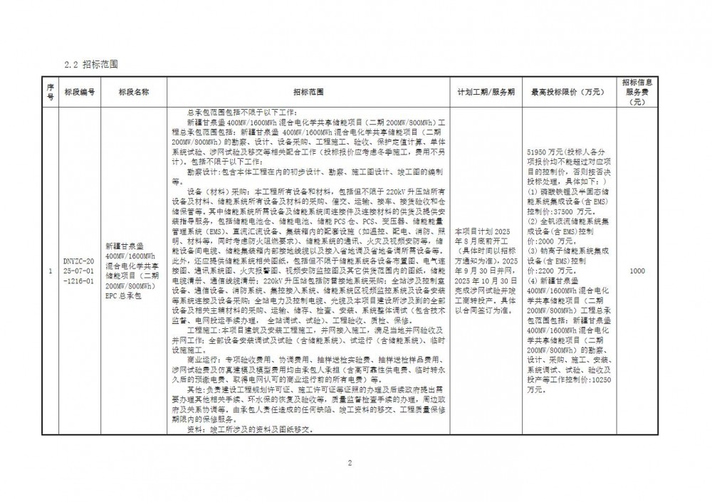 7月31日,新疆甘泉堡400MW/1.6GWh混合电化学共享储能项目(二期200MW/800MWh)EPC招标,项目招标人为乌鲁木齐和芯储能有限公司。