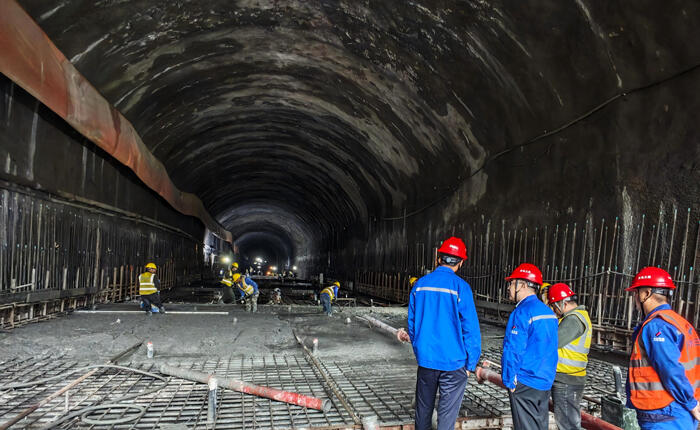 在泄洪排沙洞施工中,面对作业空间受限、结构体型复杂等施工难题,项目团队提前开展技术交底和安全培训,优化施工方案,严控混凝土配比、入仓、振捣等关键工序。同时,实时监控混凝土内部温度,有效预防裂缝产生,确保了首仓混凝土浇筑质量优良,为后续大体积混凝土连续浇筑积累了可复制、可推广的宝贵经验,同时也标志着该部位正式由开挖阶段转入混凝土衬砌施工阶段。