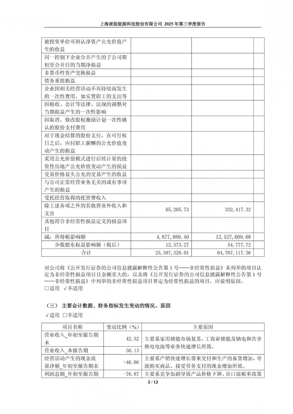 10月23日,派能科技发布2025年第三季度报告。2025年前三季度,公司实现营业收入201,256.16万元,同比增长42.52%;实现归属于上市公司股东的净利润4,785.15万元,同比增长28.05%;其中第三季度公司实现营业收入86,321.98万元,同比增长56.13%;实现归属于上市公司股东的净利润3,393.97万元,同比增长94.01%;