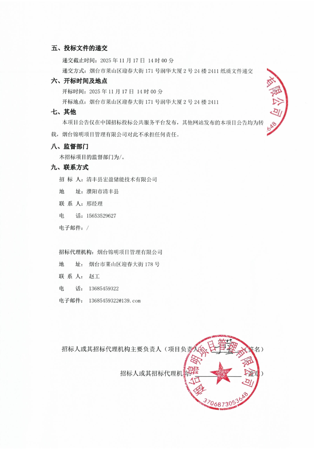 能源圈获悉,10月25日,清丰县宏盈100MW/400MWh储能电站项目工程总承包(EPC)公开招标公告发布。