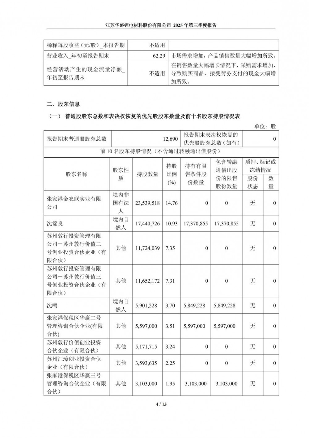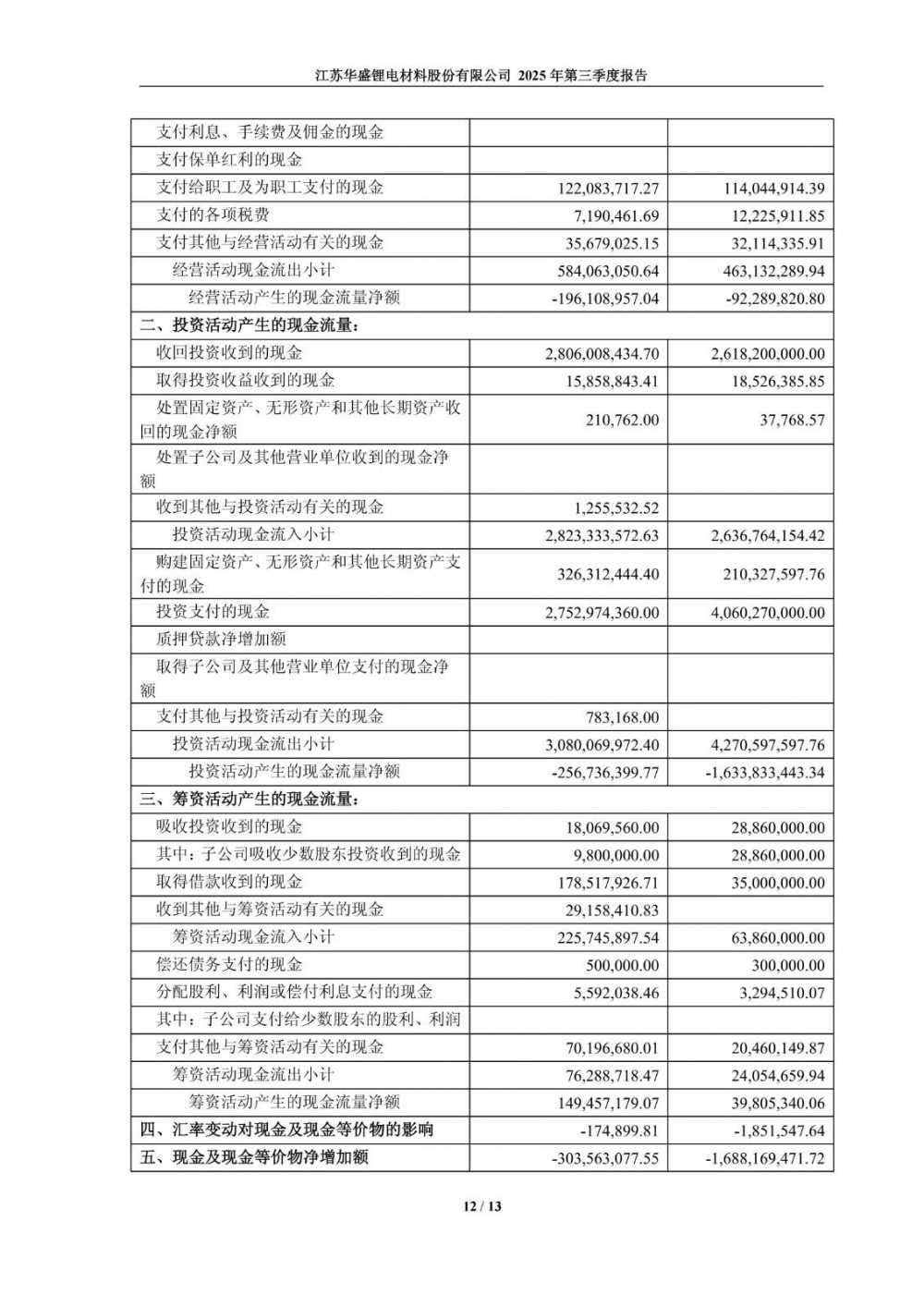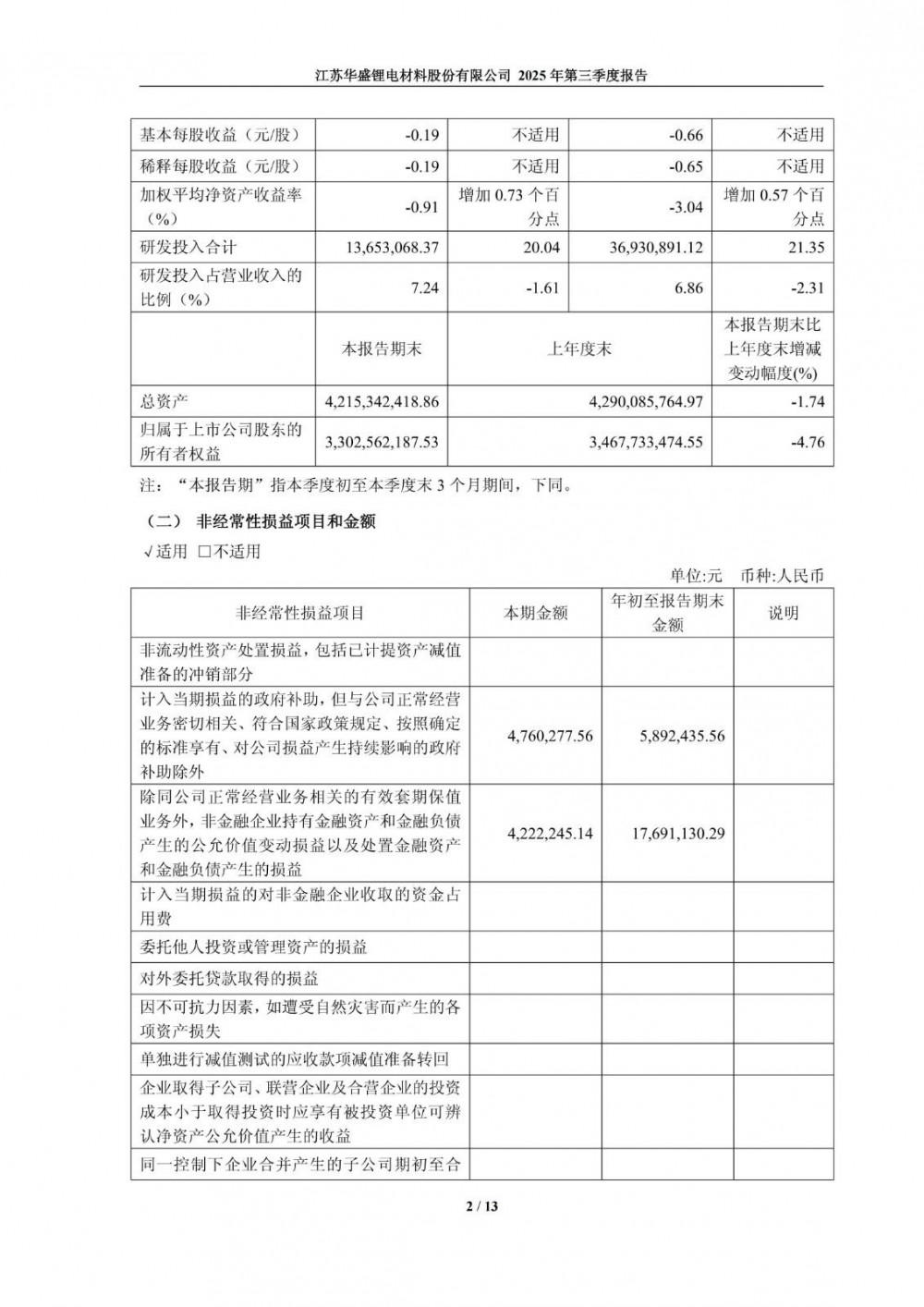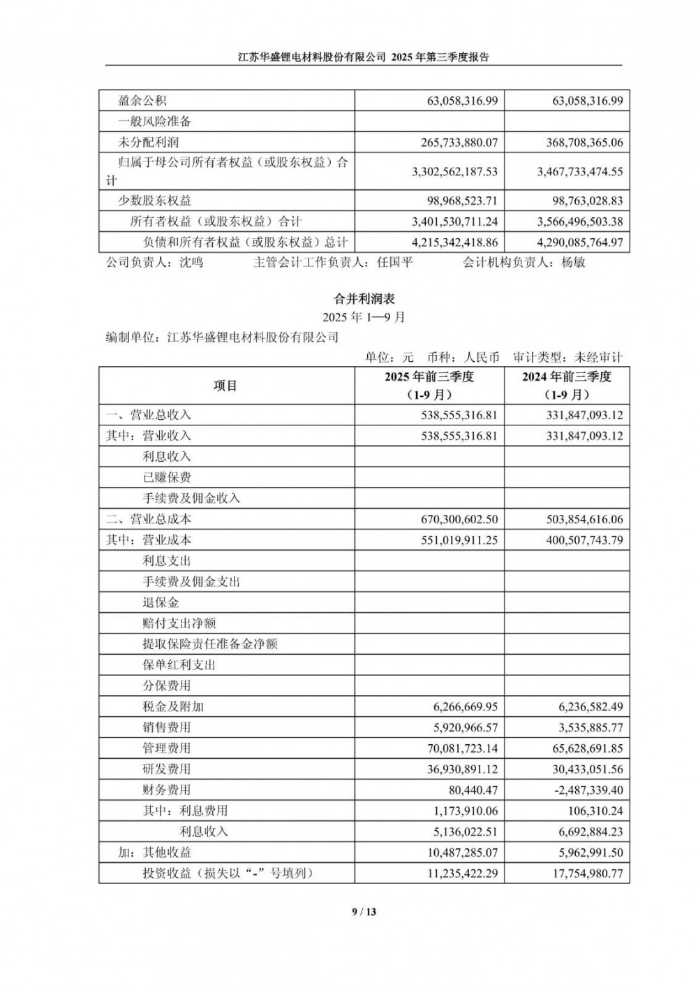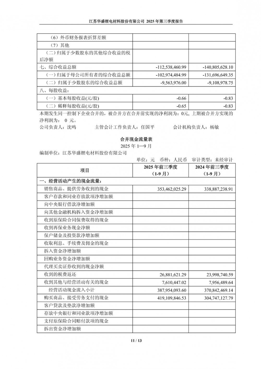 10月27日,华盛锂电发布2025年第三季度报告。前三季度公司实现营业总收入5.39亿元,同比增长62.29%;归母净利润亏损1.03亿元,上年同期亏损1.32亿元;扣非净利润亏损1.16亿元,上年同期亏损1.57亿元。