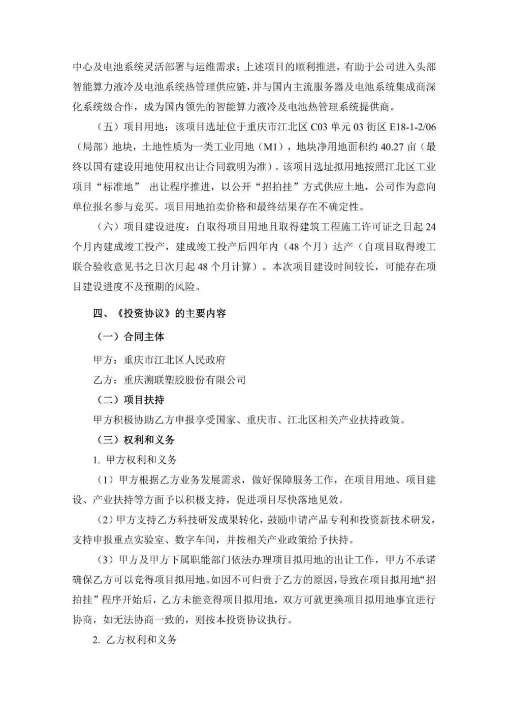 10月27日,溯联股份发布公告称,公司拟与重庆市江北区人民政府签署《投资协议》,以自有资金及自筹资金在重庆市江北区投资人民币 2.01亿元,建设智能算力液冷研发中心及电池热管理系统研发生产基地。