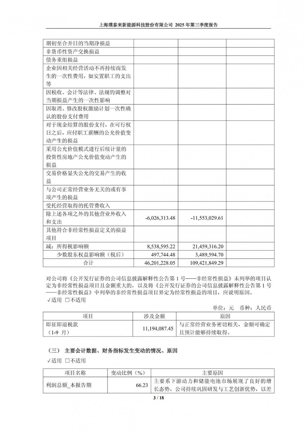 10月27日,璞泰来发布2025年第三季度报告。前三季度实现营业收入108.30亿元,同比增长10.06%;净利润17亿元,同比增长37.25%。第三季度实现营业收入37.42亿元,同比增长6.66%;净利润6.45亿元,同比增长69.30%。