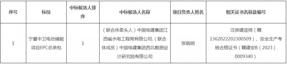 南网储能公司科技公司宁夏中卫电池储能项目EPC总承包公开招标项目(招标项目编号:CG0200022002139650),经评标委员会评审,现将中标候选人公示如下: