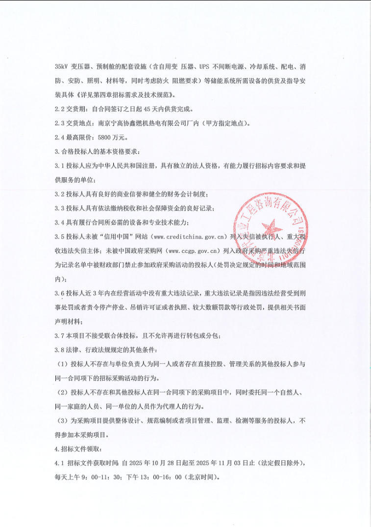 10月27日,南京宁高协鑫5万千瓦/10万千瓦时储能电站项目招标公告发布。项目资金来源为自筹资金5800万元,招标人为南京鑫高储能科技有限公司。