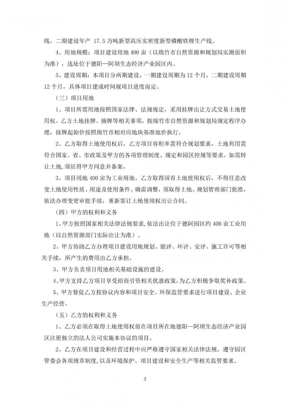 本项目分两期建设,一期建设年产17.5万吨新型高压实密度新型磷酸铁锂生产线,建设周期预计12个月;二期建设年产17.5万吨新型高压实密度新型磷酸铁锂生产线,建设周期预计12个月。