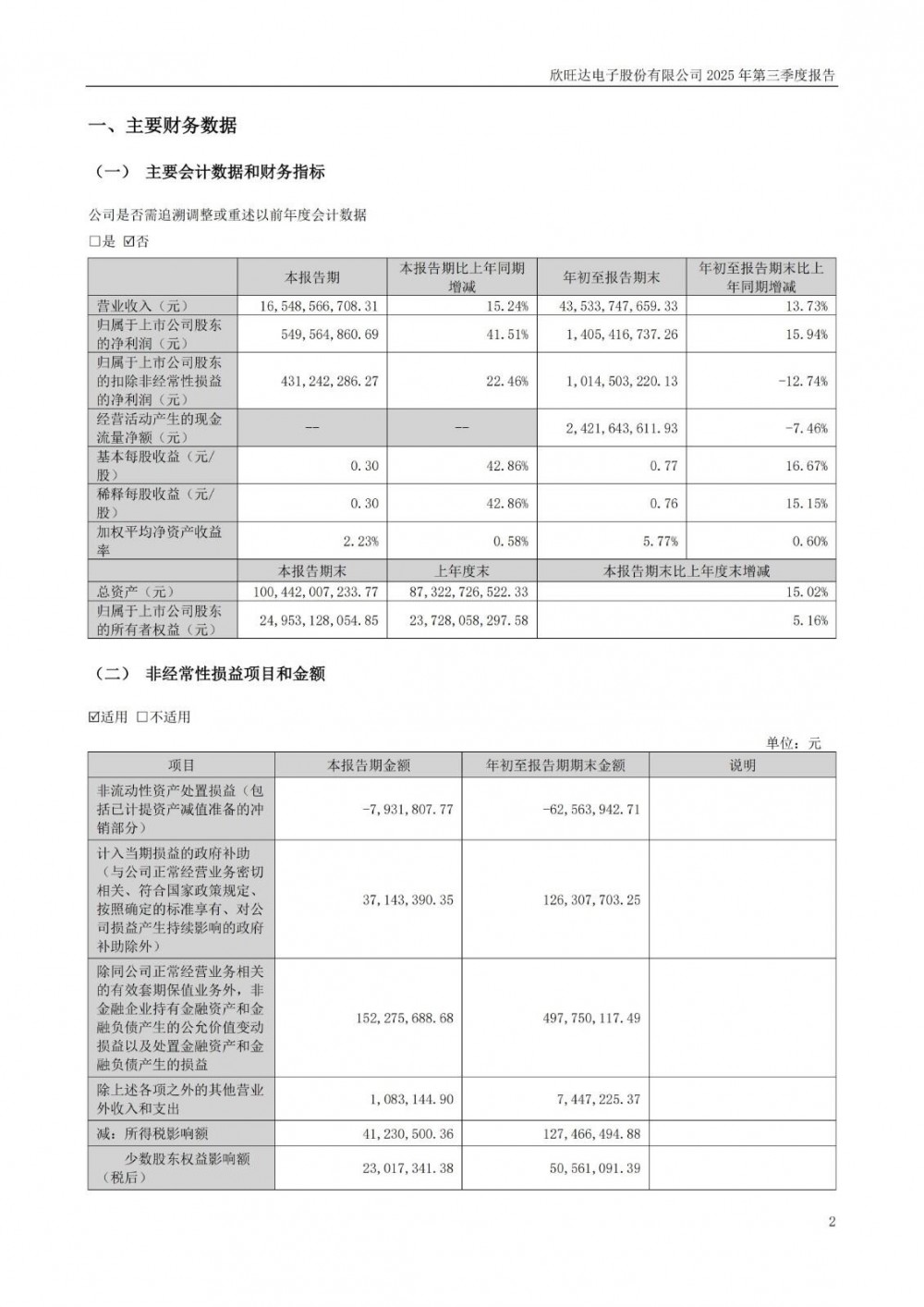 10月29日,欣旺达发布2025年三季度报告。前三季度公司实现营业总收入435.34亿元,同比增长13.73%;归母净利润14.05亿元,同比增长15.94%;扣非净利润10.15亿元,同比下降12.74%。