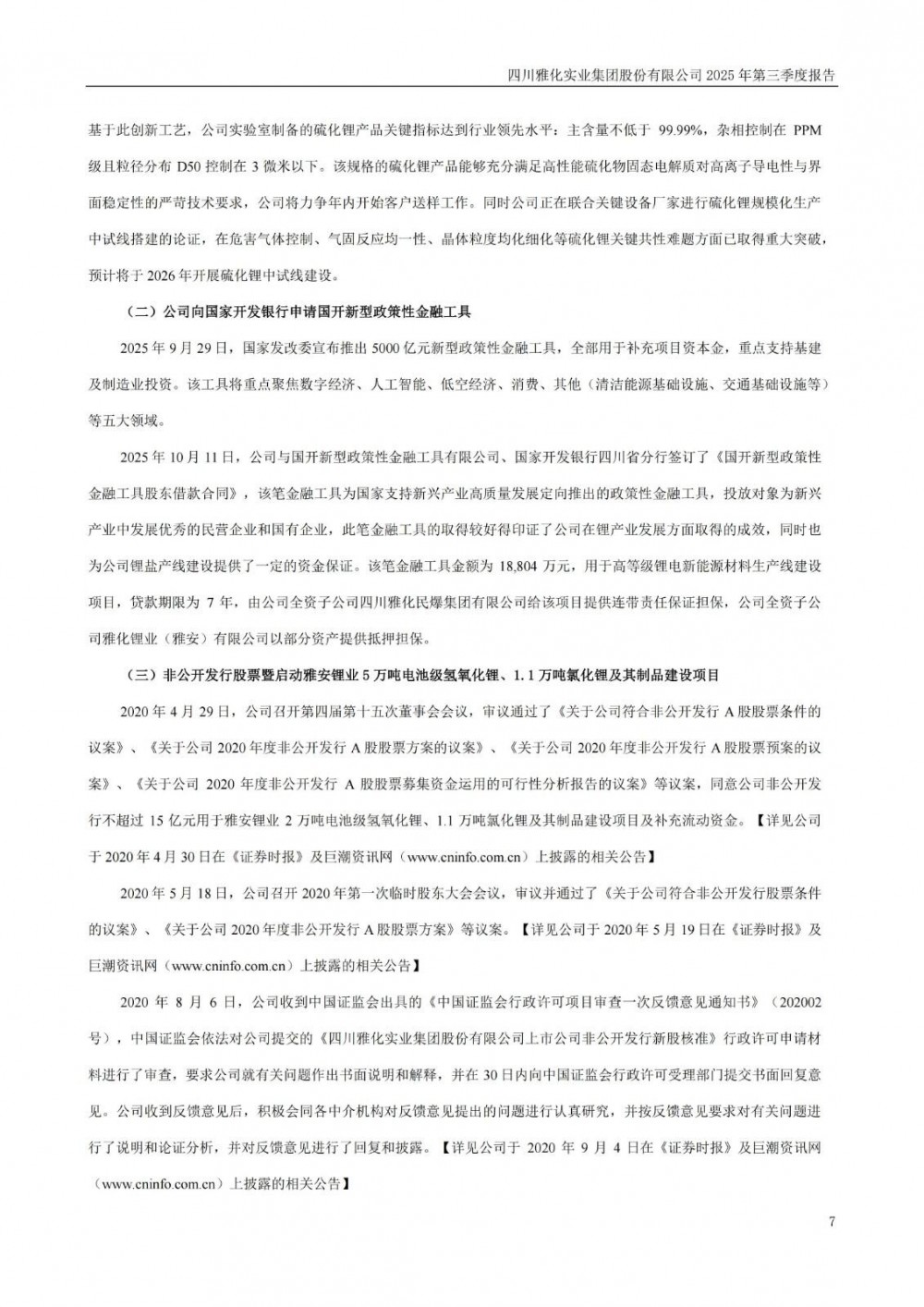 公告显示,2025年上半年锂行业受整体供大于求以及关税事件扰动,锂盐价格呈下行态势,导致雅化集团锂业务盈利受到较大影响。2025年第三季度,受江西部分锂矿停产整顿等因素影响,锂盐价格有所回升,公司管理层及时调整市场策略,积极对接下游需求,部分客户终端产品市场反馈良好,带动雅化集团锂盐产品第三季度销量大幅增长并创下单季度销量新高。