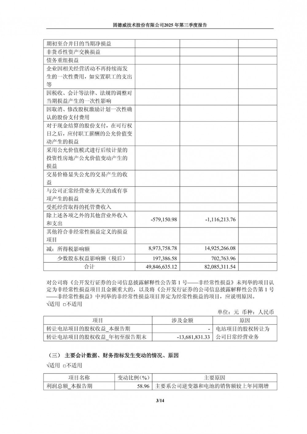 公告显示,固德威逆变器和电池的销售额较上年同期增加,成本费用同步增加,综合使得利润总额、归属于上市公司股东的净利润、扣除非经常性损益的净利润较上年同期增加。