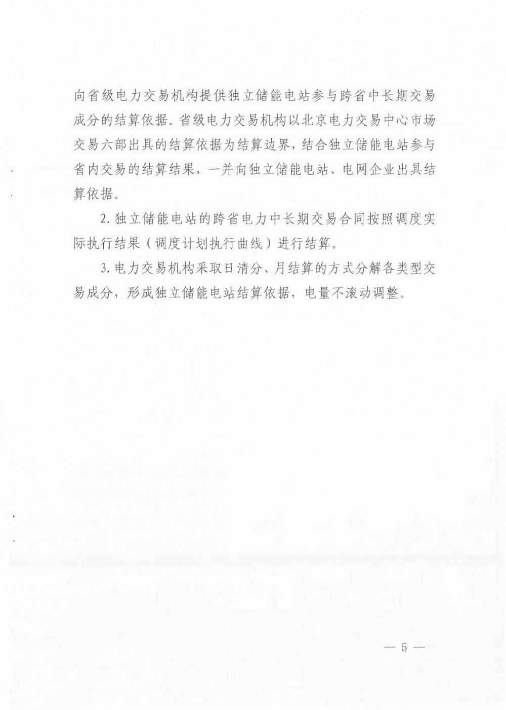 3.电力交易机构采取日清分、月结算的方式分解各类型交易成分,形成独立储能电站结算依据,电量不滚动调整。