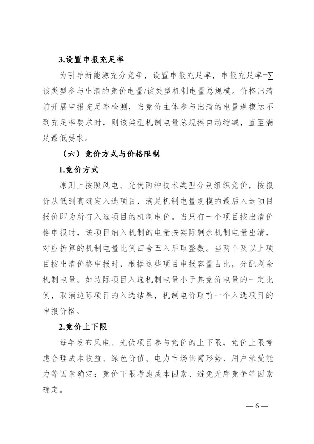 原则上按照风电、光伏两种技术类型分别组织竞价,按报价从低到高确定入选项目,满足机制电量规模的最后入选项目报价即为所有入选项目的机制电价。