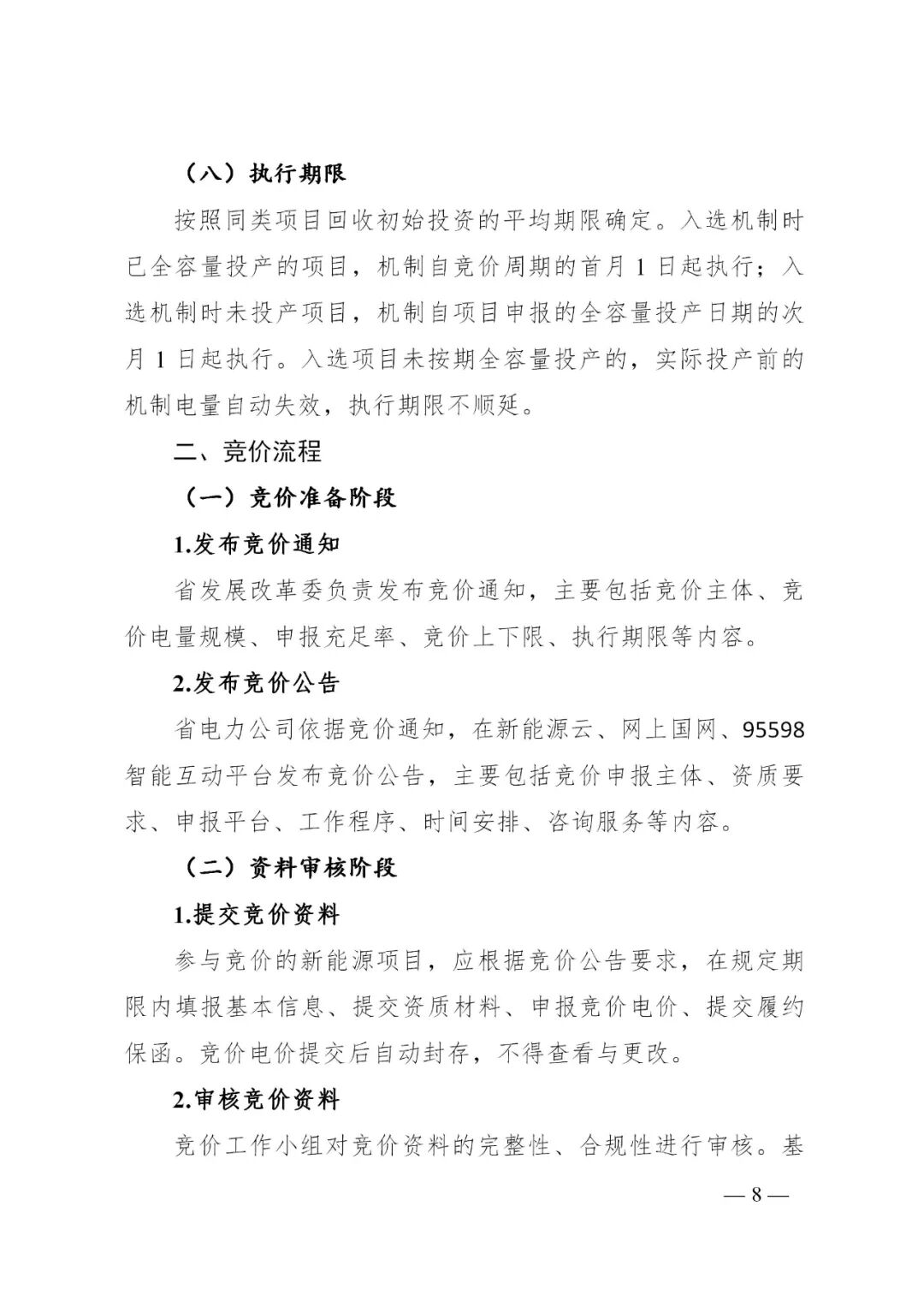 每年发布风电、光伏项目参与竞价的上下限,竞价上限考虑合理成本收益、绿色价值、电力市场供需形势、用户承受能力等因素确定;竞价下限考虑成本因素、避免无序竞争等因素确定。