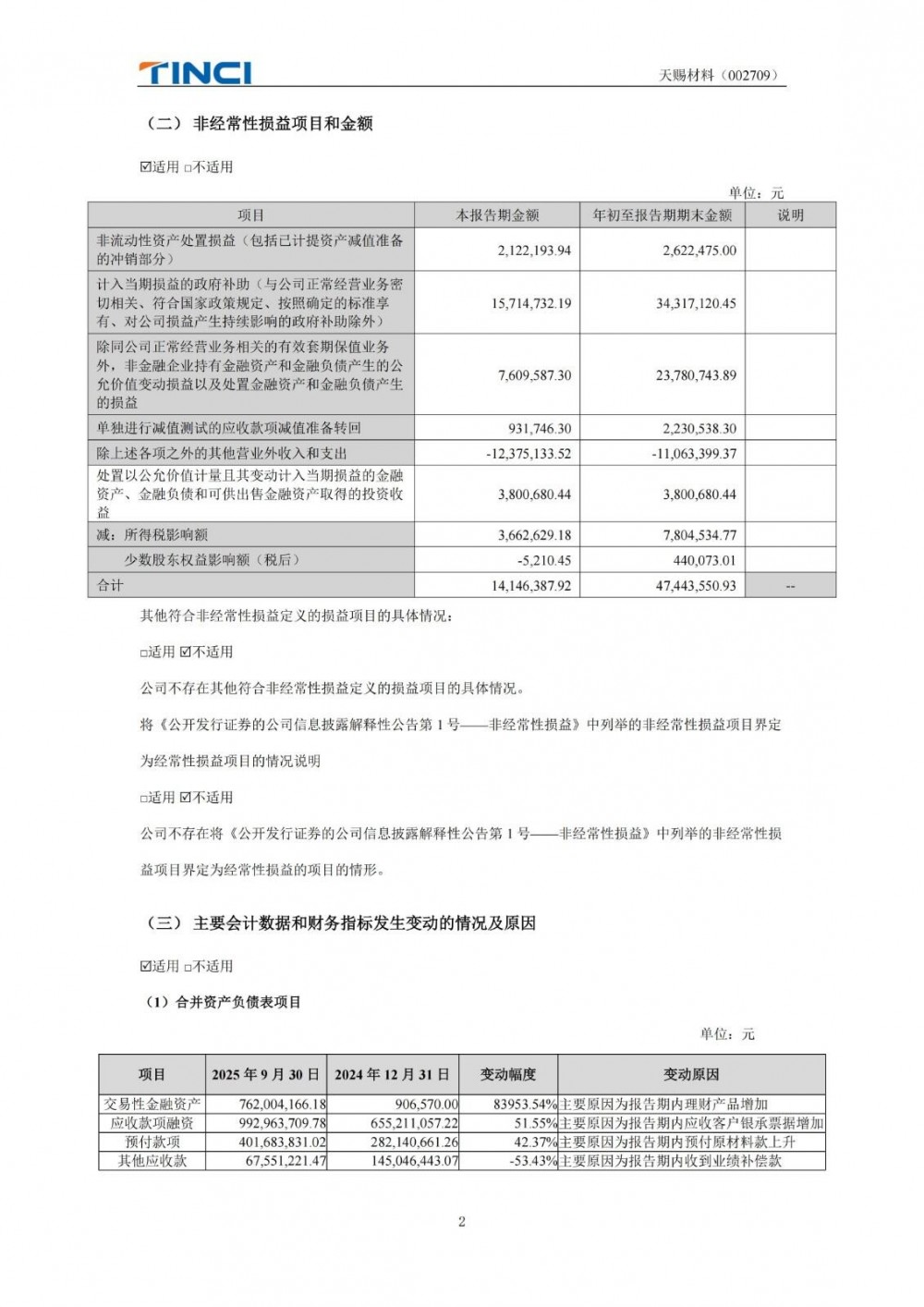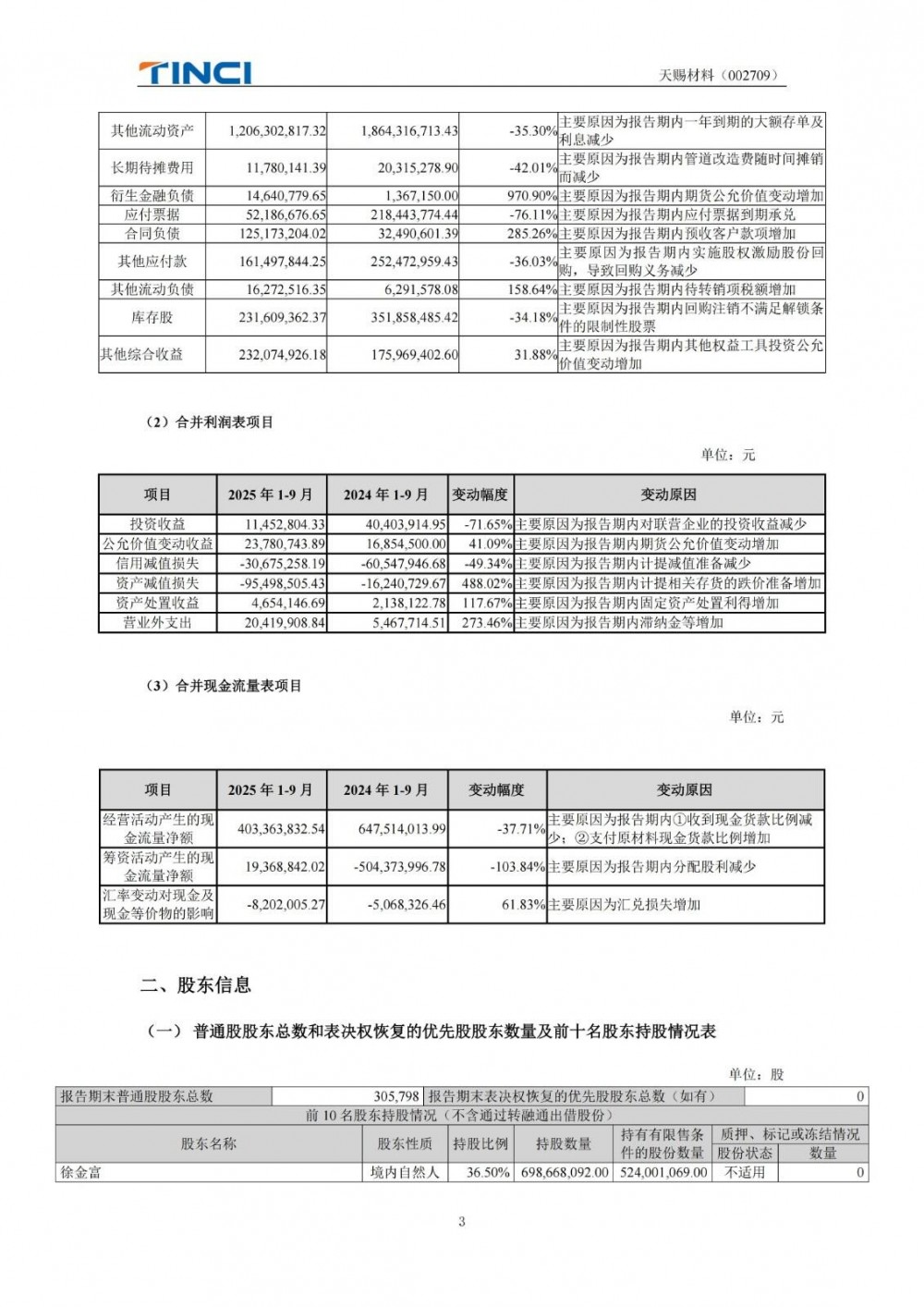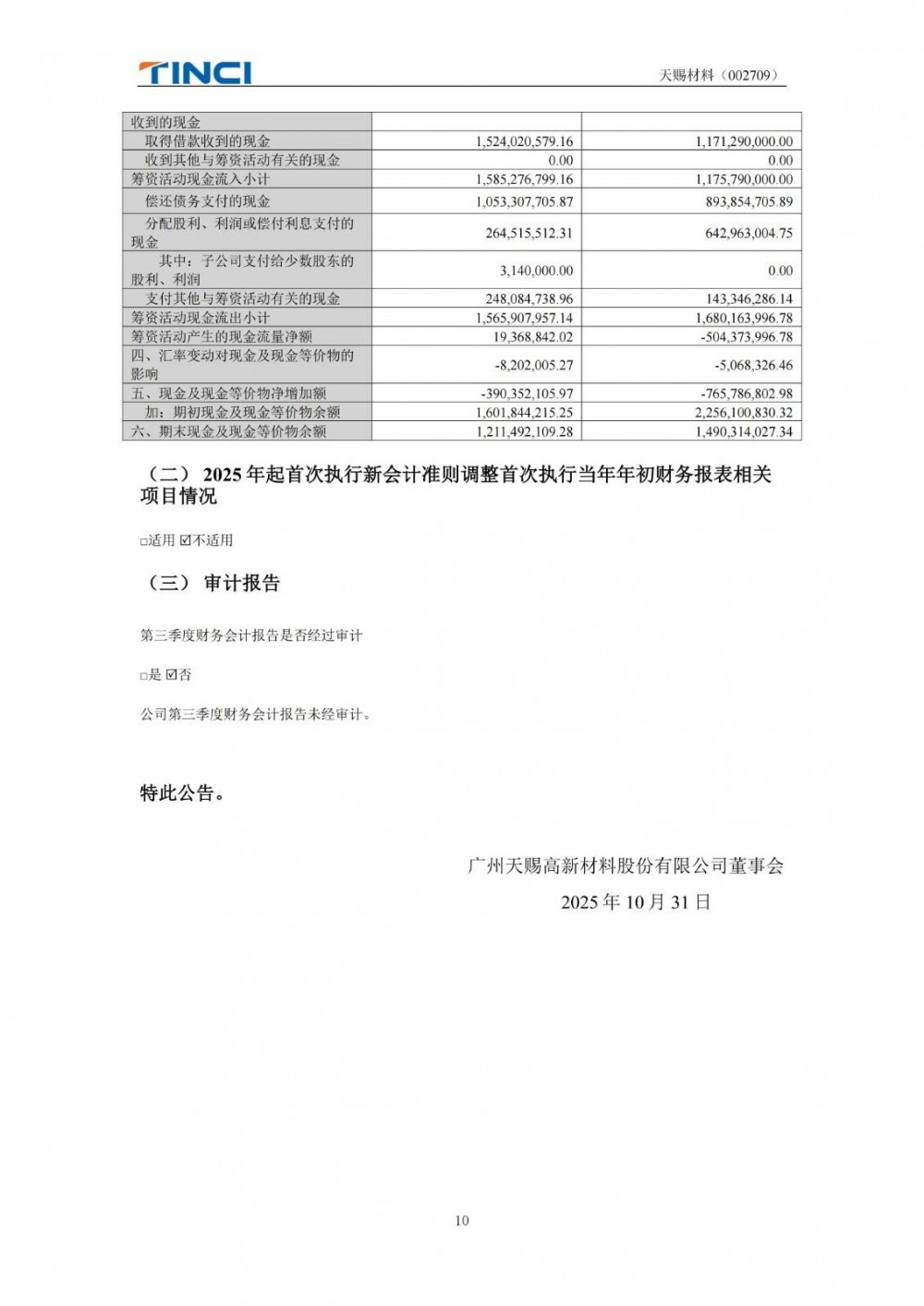 10月30日,天赐材料发布2025年三季度报告。公司2025年前三季度实现营业收入108.43亿元,同比增长22.34%;归属于上市公司股东的净利润为4.21亿元,同比增长24.33%。