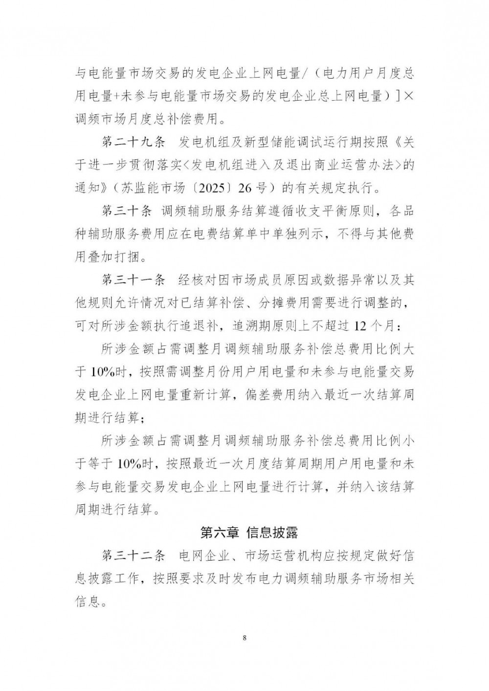 为落实《国家发展改革委 国家能源局关于建立健全电力辅助服务市场价格机制的通知》(发改价格〔2024〕196号)和《国家发展改革委 国家能源局关于印发<电力辅助服务市场基本规则>的通知》(发改能源规〔2025〕411号)要求,协同推进电力市场建设,进一步激励并网主体提升调频服务质量,支撑新型电力系统构建,服务能源转型发展,切实保障电力系统安全运行,江苏能源监管办组织对《江苏电力调频辅助服务市场交易规则》进行了修订,现将征求意见稿向社会公开征求意见。