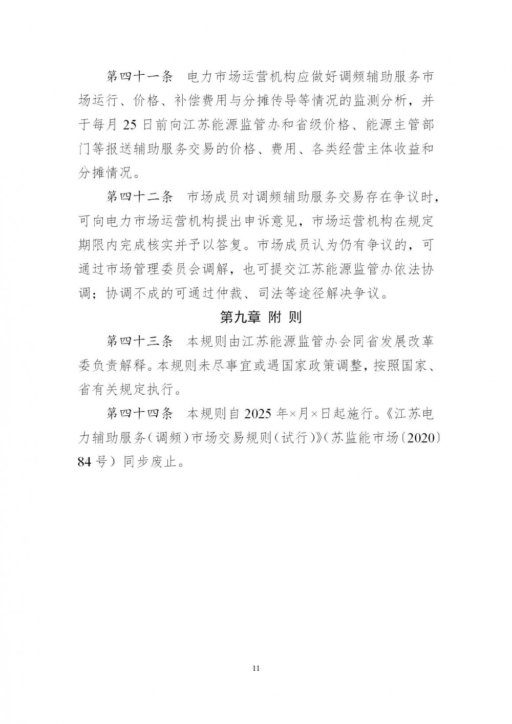 江苏能源监管办关于公开征求《江苏电力调频辅助服务市场交易规则(征求意见稿)》意见的公告