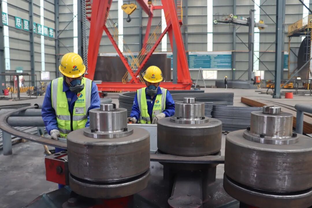 此外,项目部积极推进工艺创新与流程优化,针对加劲环制作、串浆孔封闭焊等关键工序进行技术改进,并成功研发应用六枪头气保焊接设备,有效减少冗余环节,提升工序衔接效率。同时,严格落实安全生产责任制,通过每日班前安全会与定期隐患排查,确保生产全程“零事故、零风险”。在全体人员的共同努力下,项目单月最高制作量突破80小节,稳步追平并超越预定目标。