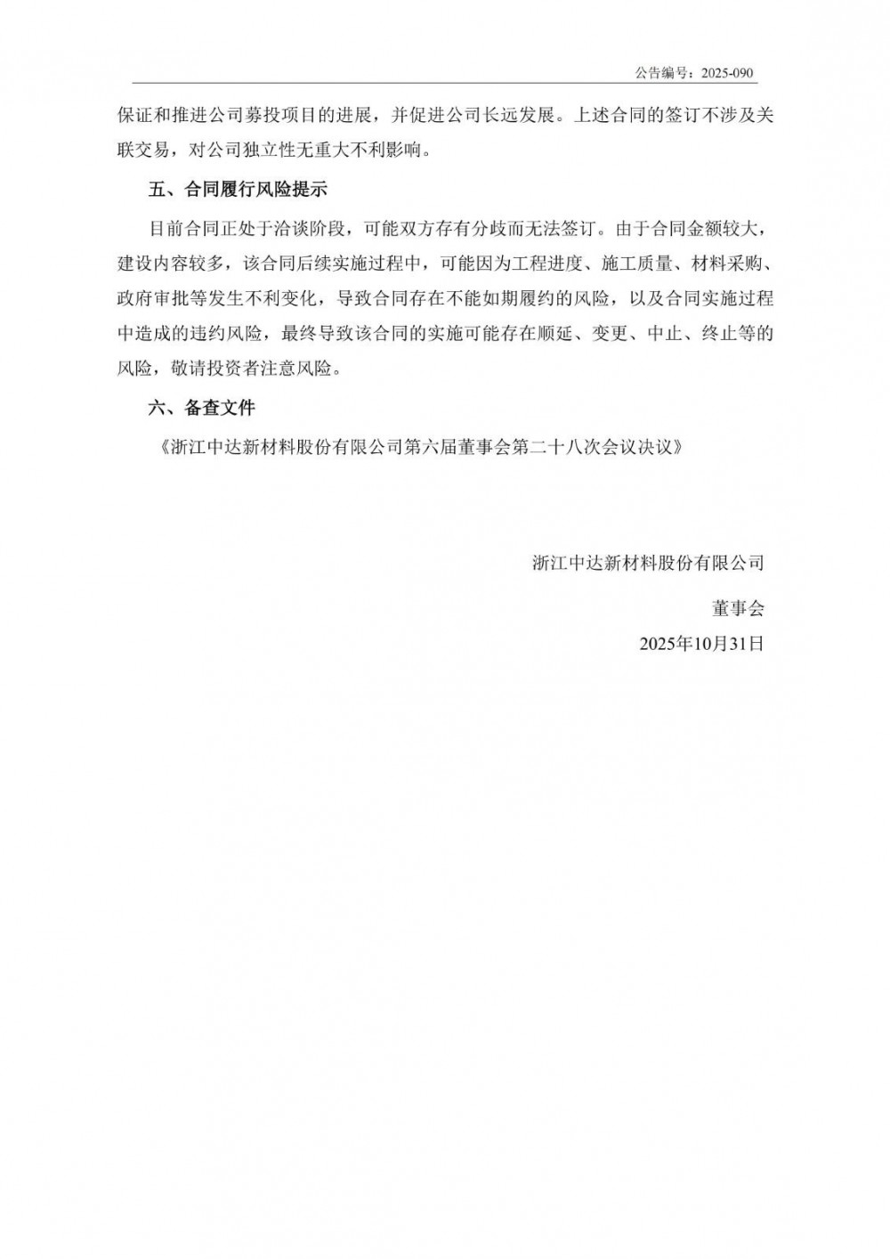 中达新材表示,该合同主要为公司募投项目的配套工程建设,符合公司战略规划需要,有利于保证和推进公司募投项目的进展,并促进公司长远发展。上述合同的签订不涉及关联交易,对公司独立性无重大不利影响。