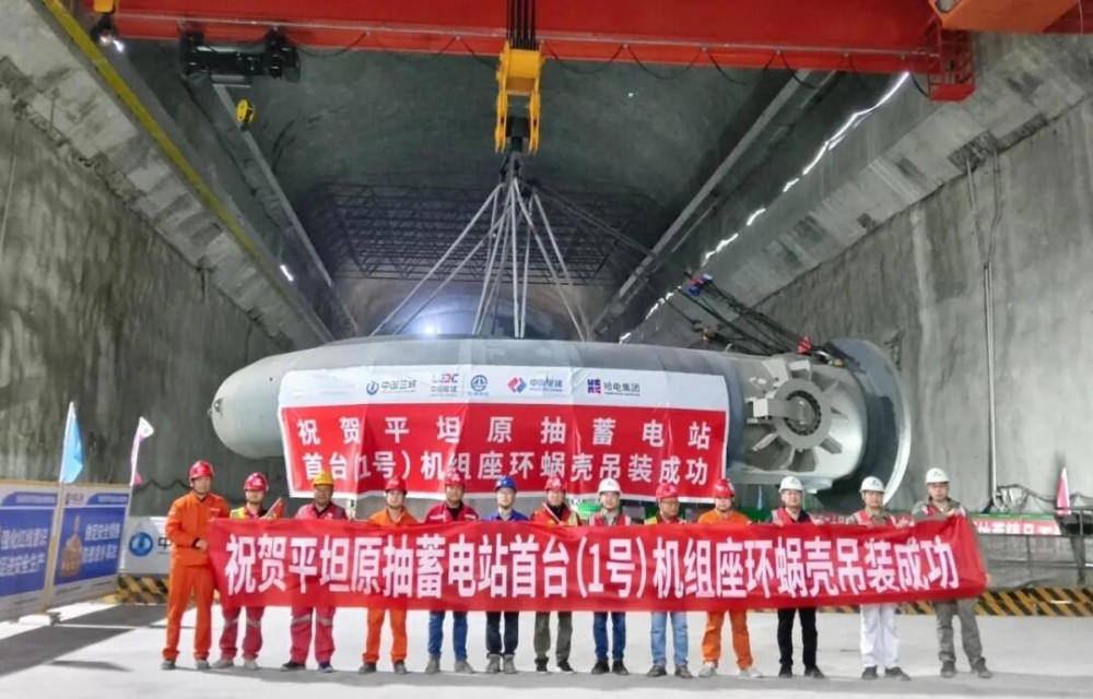 11月17日,湖北能源平坦原抽水蓄能电站首台机组座环蜗壳吊装顺利完成,标志着电站机电安装施工进入新阶段,为后续机组总装和按期投产发电奠定了坚实基础。