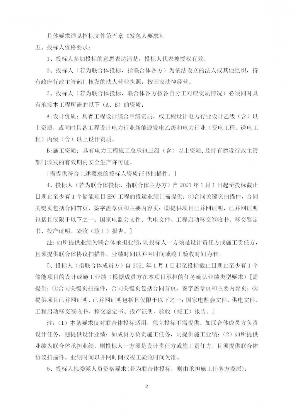 本项目采取总承包交钥匙方式完成,储能系统由投标方采购,本项目采取总承包交钥匙方式完成,招标范围除新建满足招标文件技术要求的完整的用户侧储能电站外,还包括满足储能电站安装至并网运行所需具备的勘察、设计、采购、运输及储存、备案、建筑安装、施工、调试、等保测评、试验及测试、试运行、消缺、培训和最终交付投产、不少于两年质保期等(储能系统电芯、PCS质保为5年,以整体竣工验收合格起计算日期)。