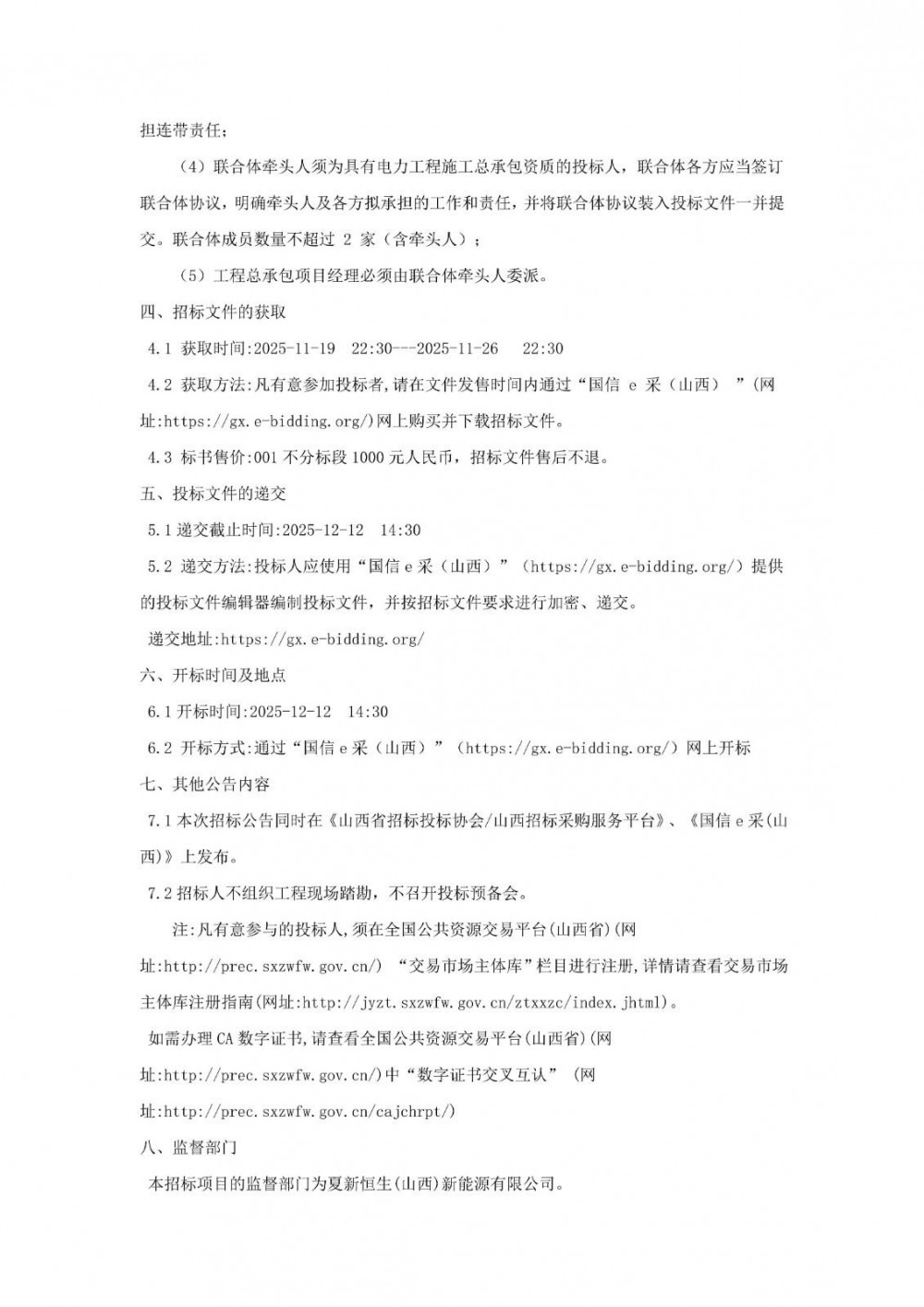 11月19日,夏新恒生(山西)新能源有限公司夏县100MW/120.33MWh混合储能电站项目EPC总承包招标公告发布。
