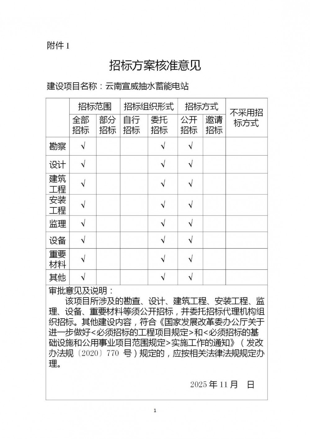 报来《曲靖市发展和改革委员会关于上报云南宣威抽水蓄能电站项目核准的请示》(曲发改基础〔2025〕49号)及有关材料收悉。经研究,云南宣威抽水蓄能电站项目已纳入国家抽水蓄能中长期发展规划,符合国家能源局关于云南省抽水蓄能年度发展规模控制要求,已列入云南省2024-2028年服务本省电力系统抽水蓄能项目布局优化方案。现就该项目核准事项批复如下: