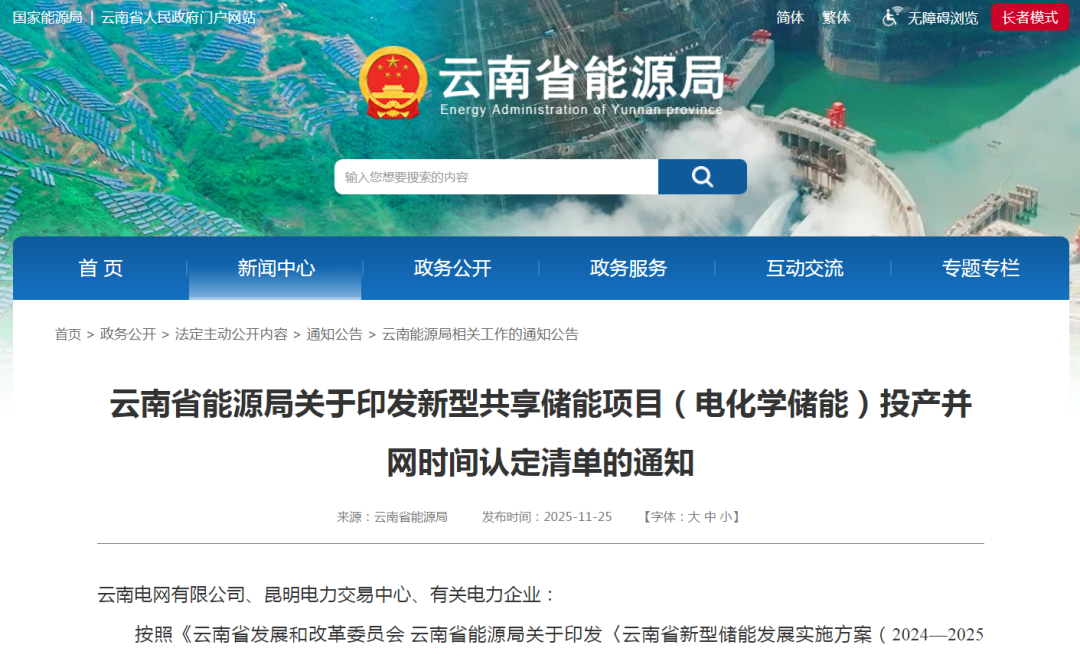 按照《云南省发展和改革委员会 云南省能源局关于印发〈云南省新型储能发展实施方案(2024—2025年)〉的通知》(云能源科技〔2024〕98号)(以下简称《实施方案》)、《云南省发展和改革委员会 云南省能源局关于进一步推进新型共享储能发展的通知》(云能源科技〔2025〕1号)、《云南省电化学储能项目投产并网时间技术认定指南(试行)》《云南省能源局关于开展新型共享储能项目(电化学储能)投产并网时间认定的通知》(云能源办科技〔2025〕136号)等要求,省能源局会同有关单位开展了新型共享储能项目(电化学储能)投产并网时间认定工作。