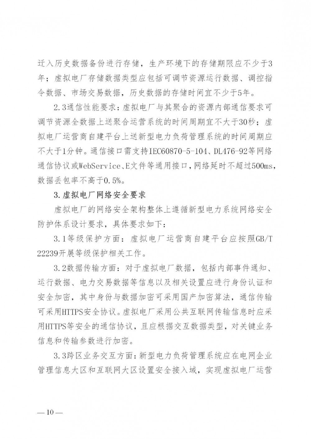 第二十二条 虚拟电厂运营商应建立健全安全防护机制,通过身份鉴别、访问控制、安全审计、入侵防范等手段保障虚拟电厂运营商自建平台的平稳运行。在数据传输方面,应采用协议层HTTPS,应用层国密算法加密,同时对数据完整性进行校验。