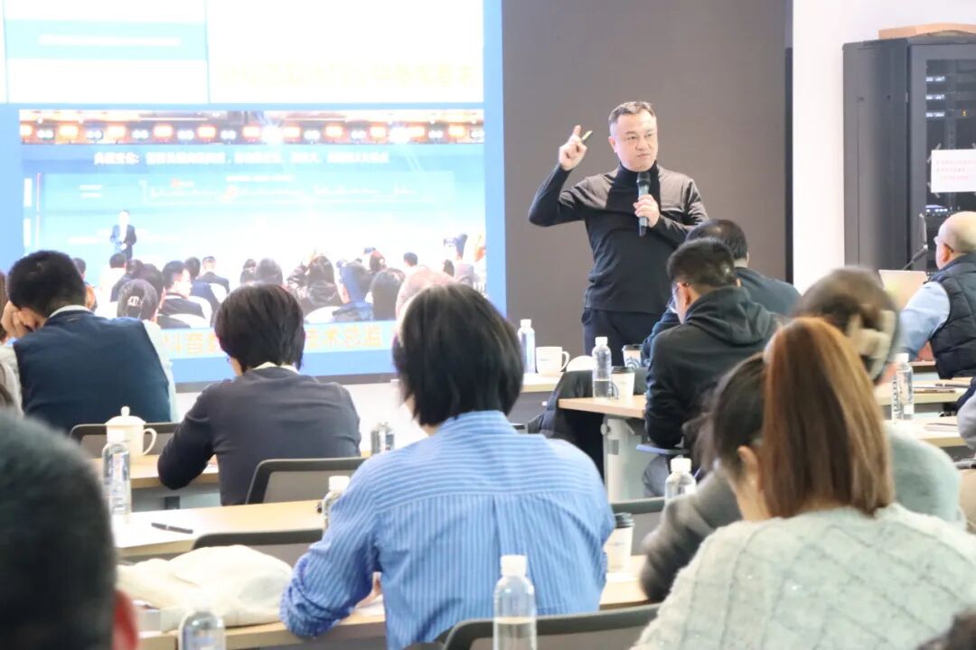 在技术交流环节,微控飞轮战略规划部吴帝男基于当前能源与数字变革背景,系统介绍了公司在三大核心方向的业务布局:以飞轮储能破解 AI 算力高频波动难题;以磁浮装备赋能热泵、ORC、空压机在工业领域的高效节能应用;以全生命周期运营方案助力零碳园区建设,展现了微控在零碳技术领域的多元布局。