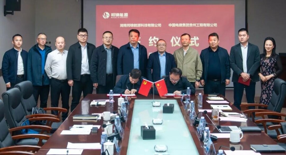 近日,湖南邦锦能源科技有限公司(以下简称“邦锦能源”)与中国电建集团贵州工程有限公司(以下简称“贵州工程公司”)战略合作签约仪式在长沙隆重举行。双方代表齐聚一堂,共同签署合作协议,标志着两家企业在新能源领域的合作迈入全新阶段,将携手在储能、光伏、风电等绿色能源赛道展开深度协同,为国家“双碳”目标落地注入强劲合力。