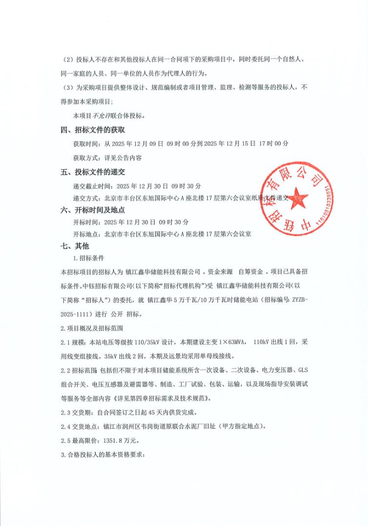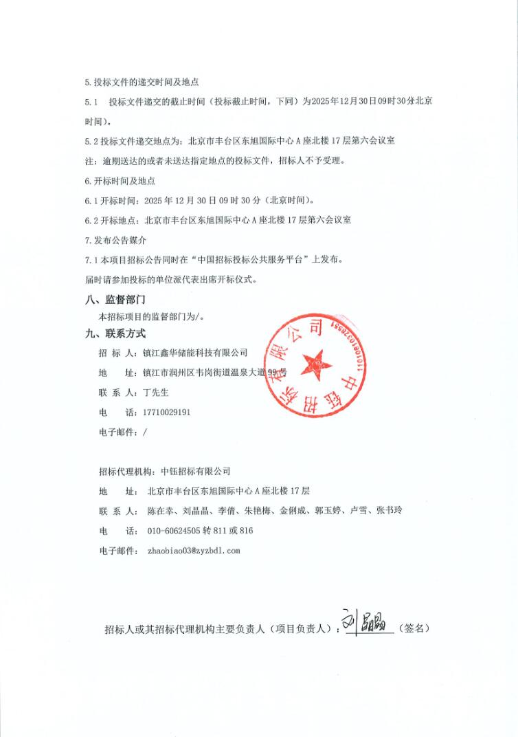 12月8日,镇江鑫华5万千瓦/10万千瓦时储能电站招标公告发布。