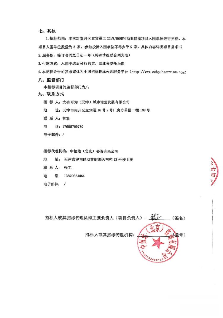 12月9日,南开区宜宾道20MW/50MWH工商业储能项目入围单位招标项目招标公告发布。