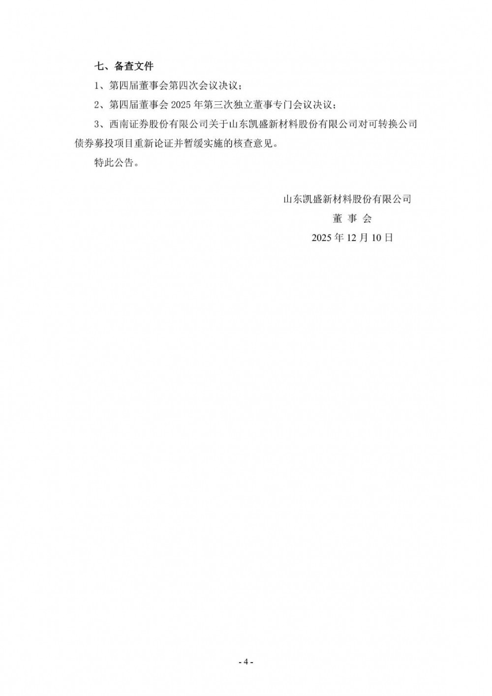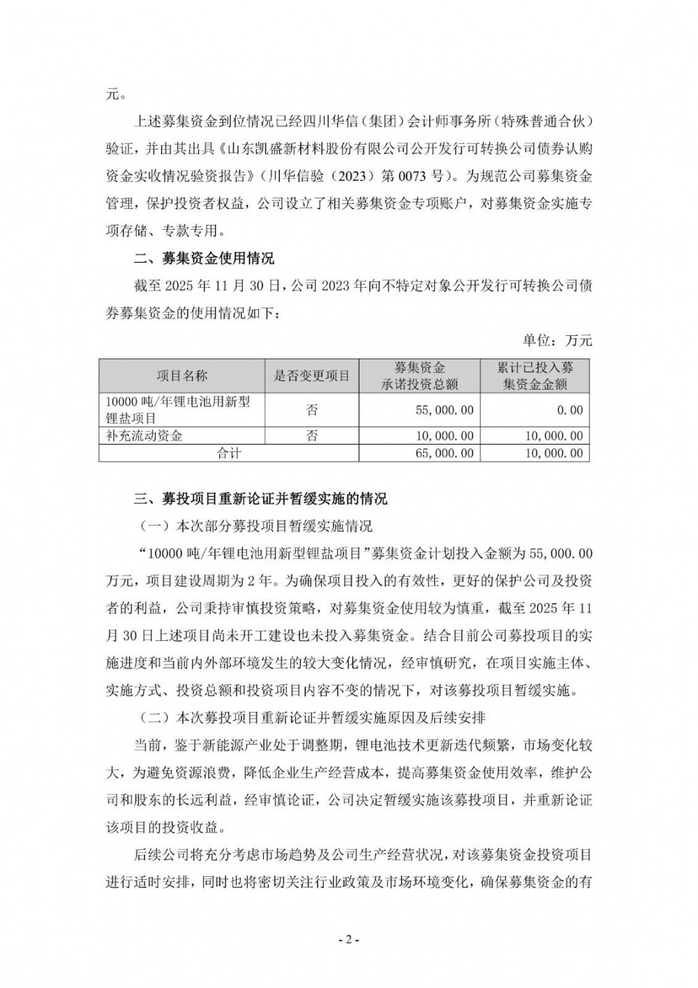 12月10日,凯盛新材发布公告称,公司决定暂缓实施公开发行可转换公司债券募投项目“10000吨/年锂电池用新型锂盐项目”,该项目计划投入金额为5.5亿元,项目建设周期为2年。