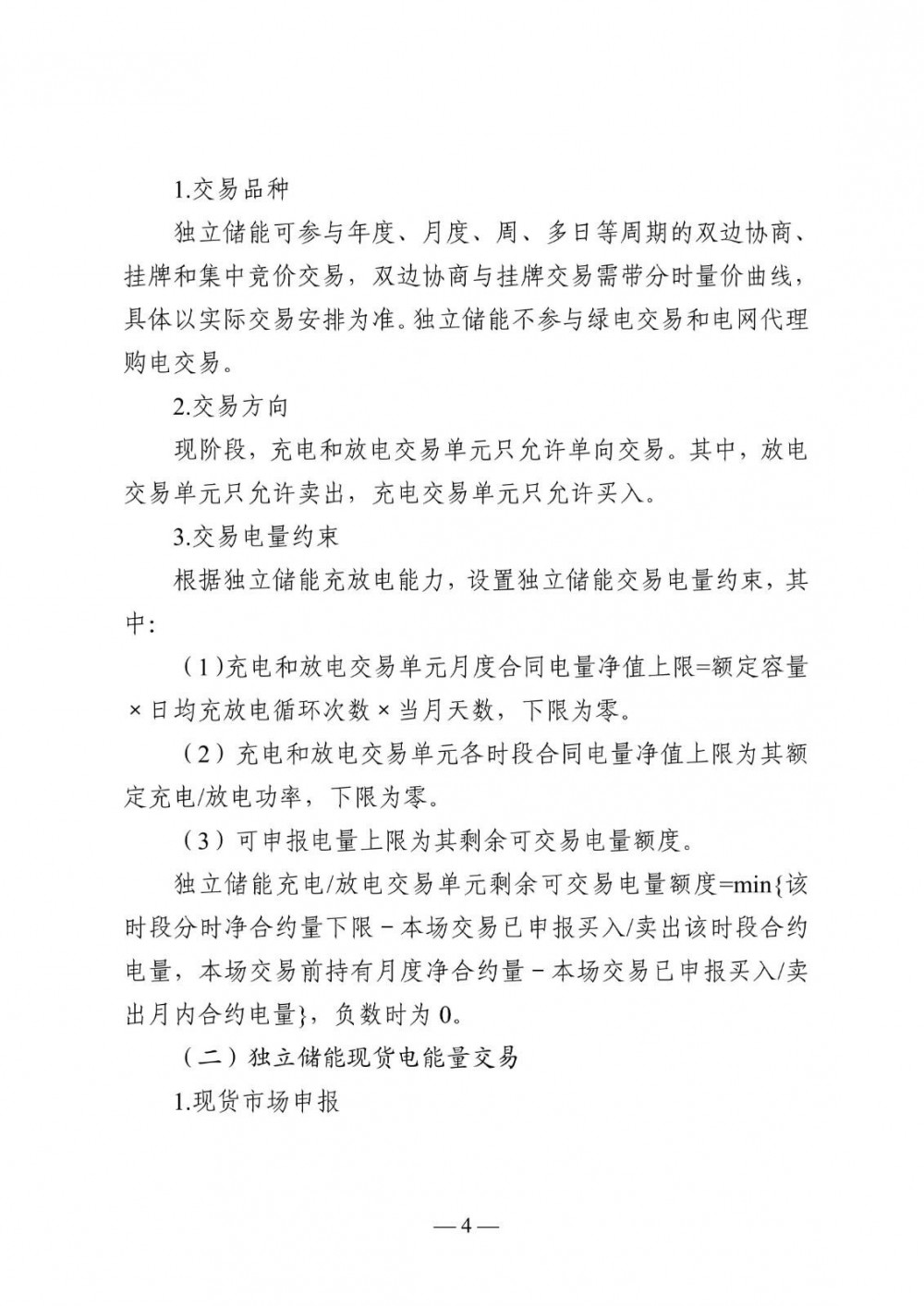 独立储能可参与年度、月度、周、多日等周期的双边协商、挂牌和集中竞价交易,双边协商与挂牌交易需带分时量价曲线,具体以实际交易安排为准。独立储能不参与绿电交易和电网代理购电交易。