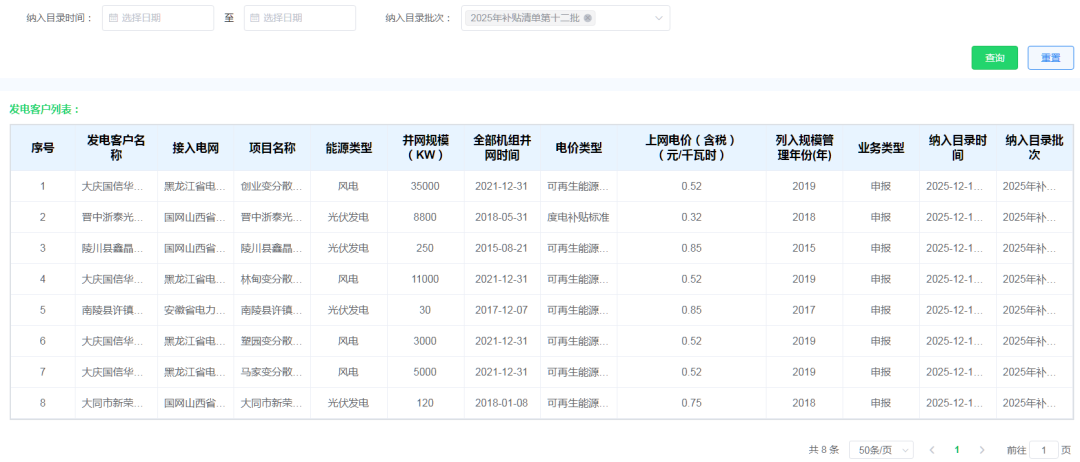关于公布2025年第十二批可再生能源发电补贴项目清单的报告