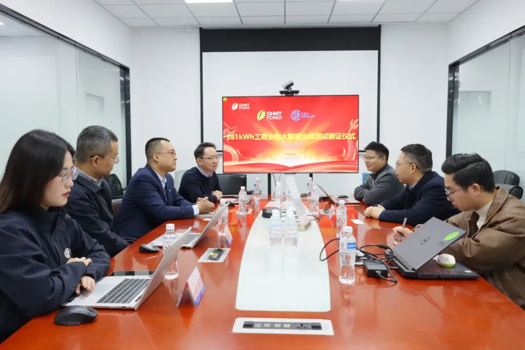 在双方团队的协同努力下,正泰电源125kW/261kWh工商业户外储能柜成功通过严苛的CSA C800标准测试,并同时满足UL 9540A草案版对整系统燃烧评估的相关要求,成为全球首款在此类开门大规模火烧测试中兼顾两项权威标准的工商业储能柜。