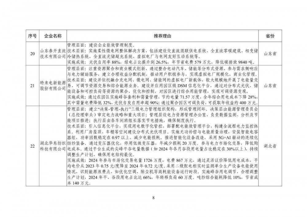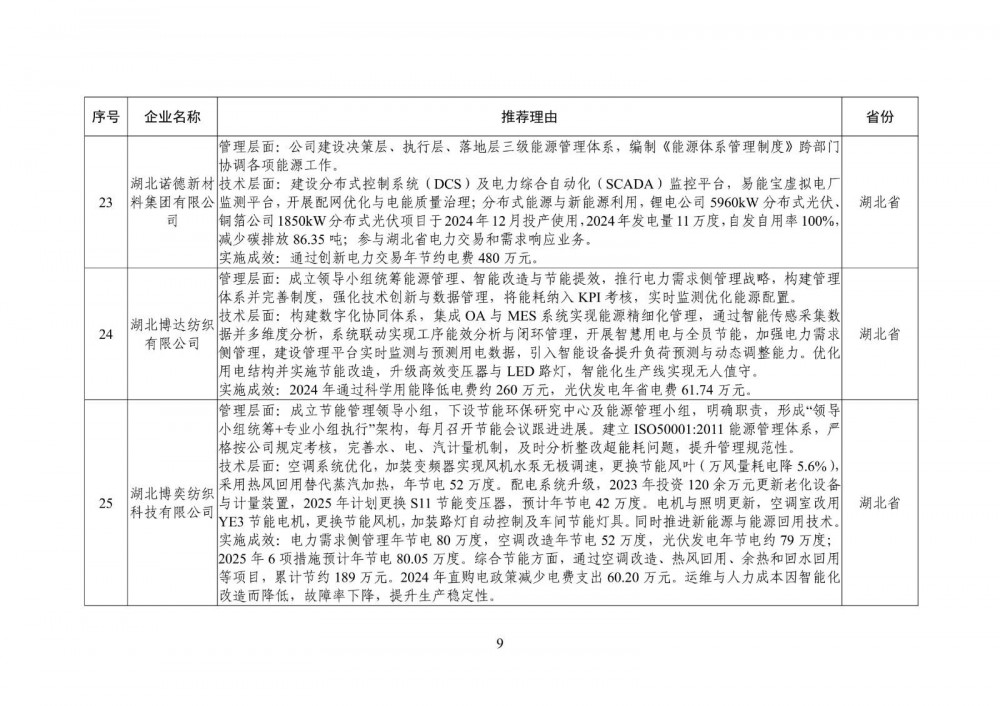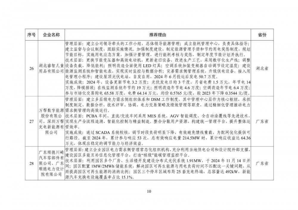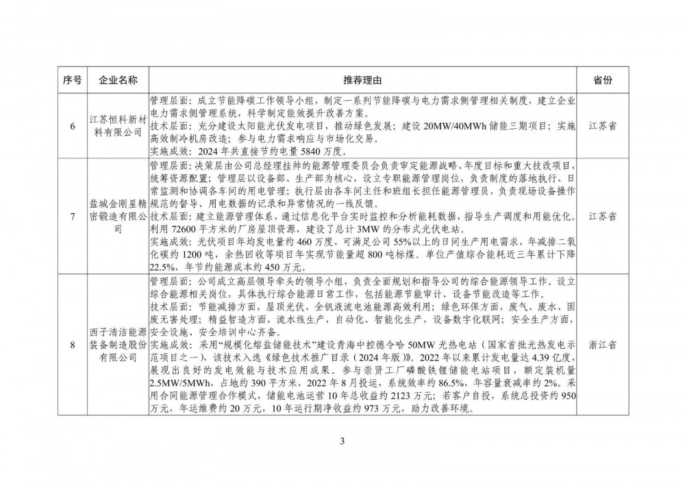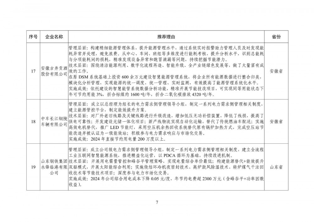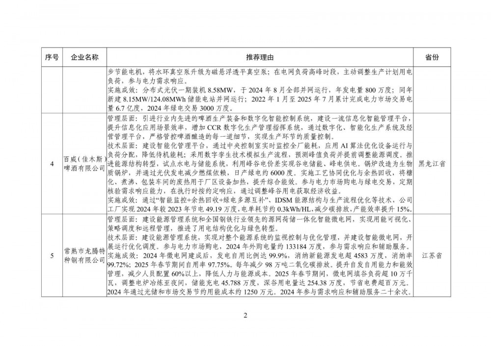 为贯彻落实国家能源生产和消费革命战略,做好工业领域电力需求侧管理工作,经地方行业主管部门初审、专家复审、复核公示等程序,确定34家企业和30项产品(技术)列入《全国工业领域电力需求侧管理典型案例(2025年)》,现予以公布(名单见附件)。