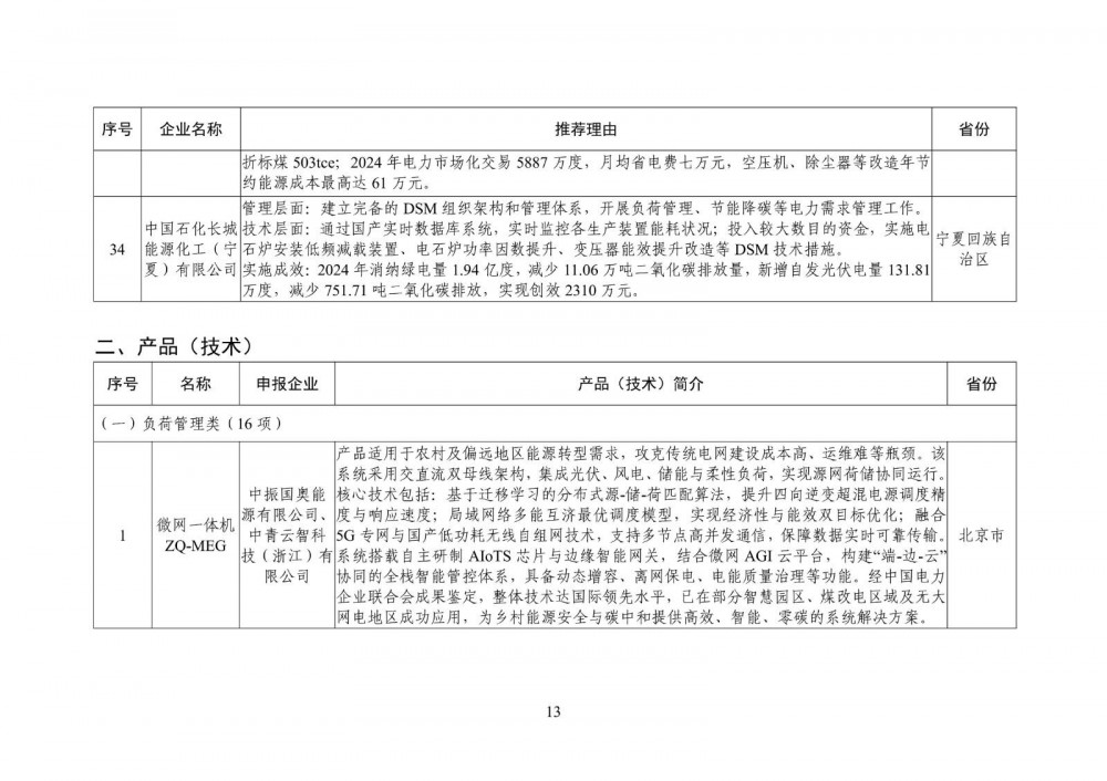 共34家企业、30项产品(技术)入围。其中,负荷管理类16项、综合能效类8项、其他6项。