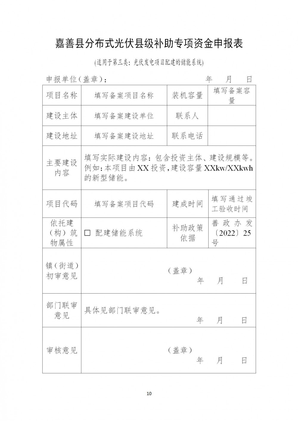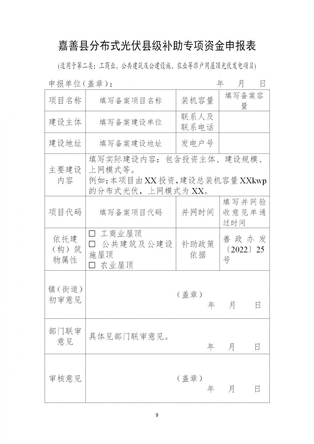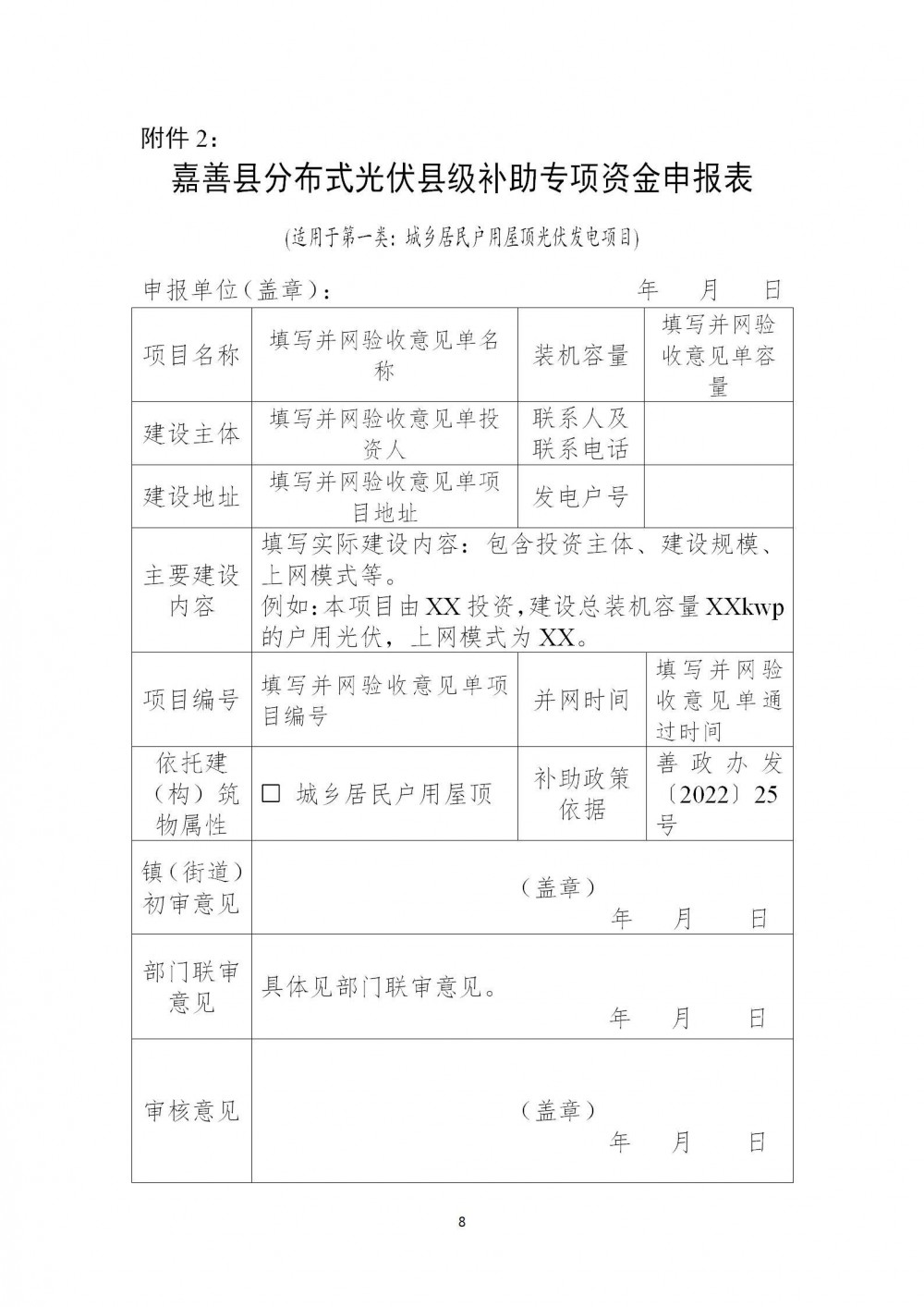 1.《嘉善县分布式光伏县级补助专项资金申报表》(见附件);
