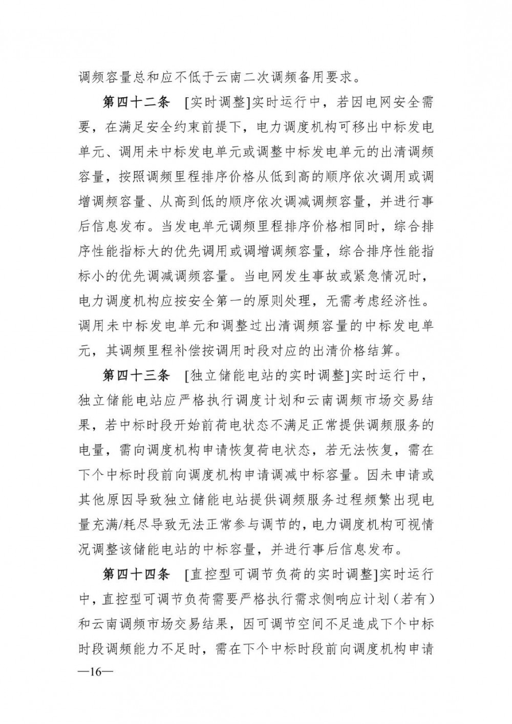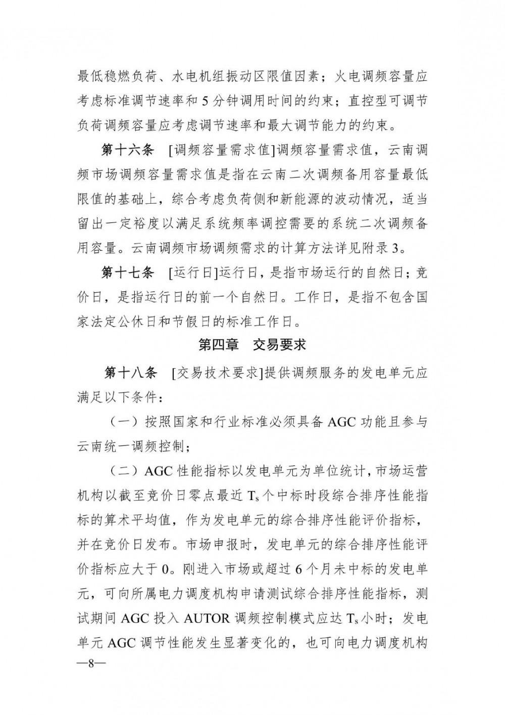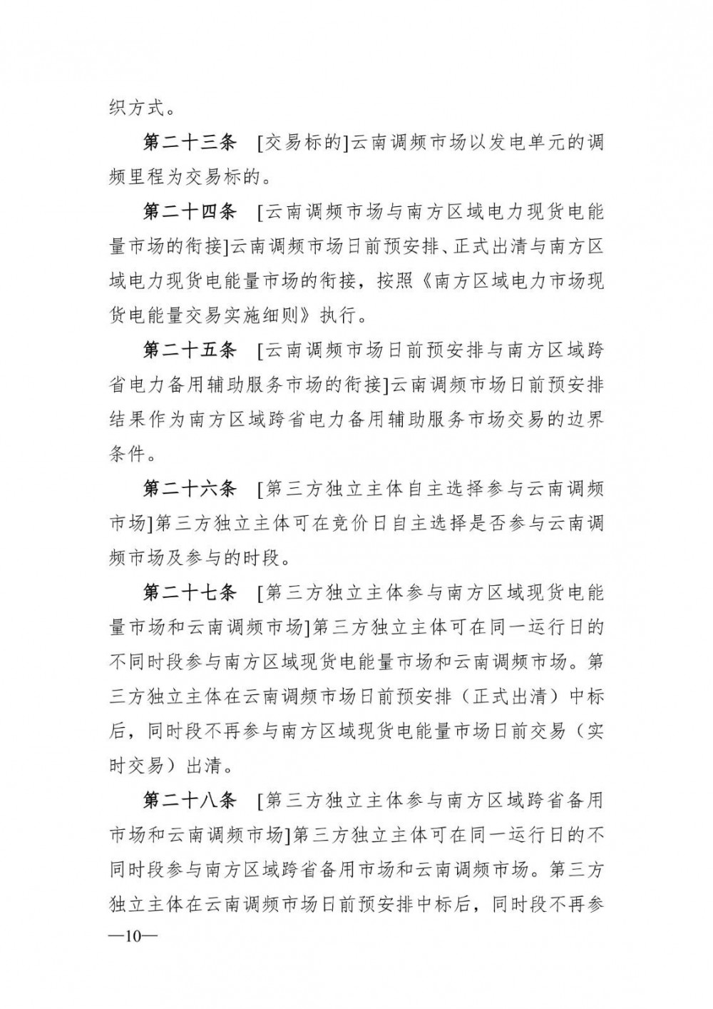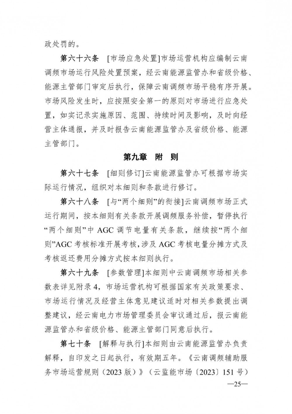 为深入贯彻党中央、国务院重大决策部署,落实国家发展改革委、国家能源局《关于建立健全电力辅助服务市场价格机制的通知》(发改价格〔2024〕196号)、《电力辅助服务市场基本规则》(发改能源规〔2025〕411号)等有关工作要求,持续优化完善电力辅助服务市场相关机制,促进新型电力系统健康有序发展,结合市场运行实际,云南能源监管办会同有关单位组织修编了《云南调频辅助服务市场实施细则》《云南黑启动辅助服务市场实施细则》,现予以印发,并就有关事项通知如下,请一并贯彻执行。