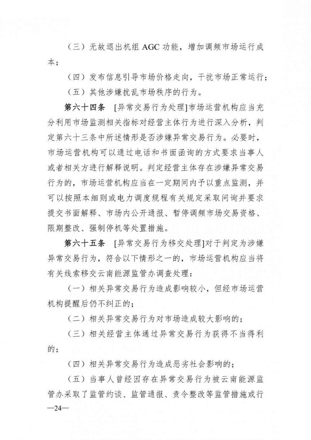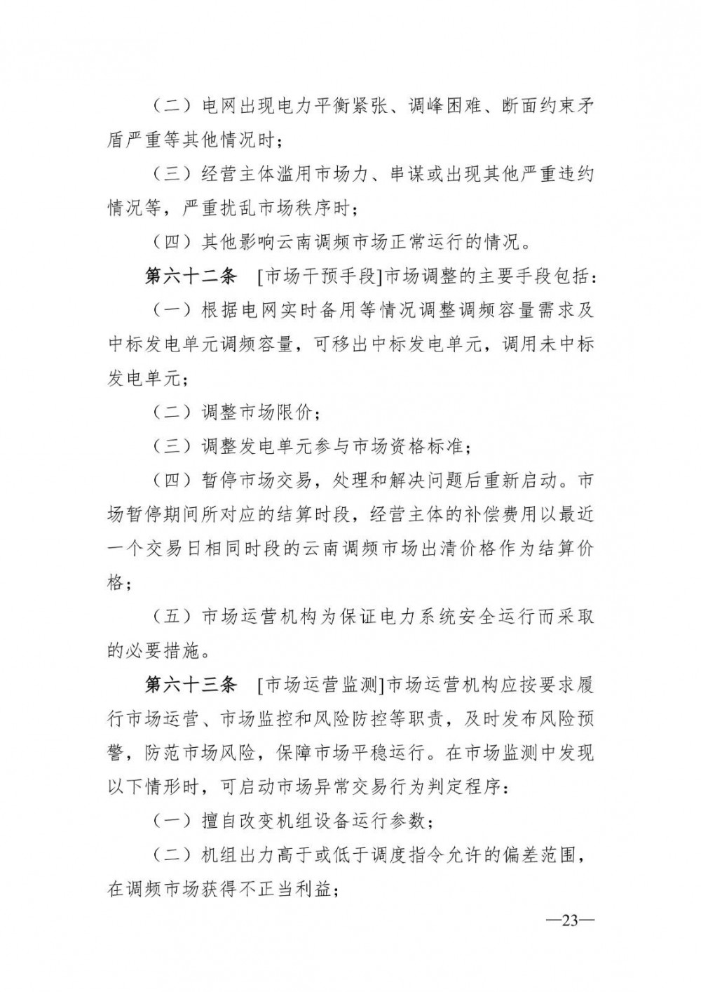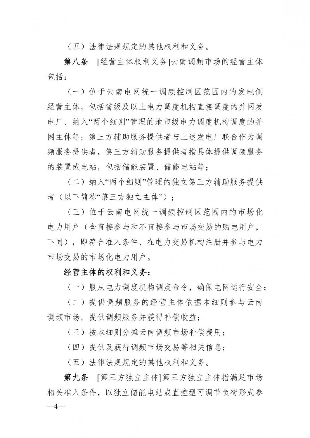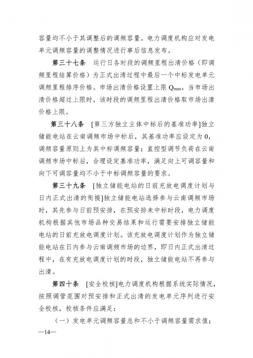 为深入贯彻党中央、国务院重大决策部署,落实国家发展改革委、国家能源局《关于建立健全电力辅助服务市场价格机制的通知》(发改价格〔2024〕196号)、《电力辅助服务市场基本规则》(发改能源规〔2025〕411号)等有关工作要求,持续优化完善电力辅助服务市场相关机制,促进新型电力系统健康有序发展,结合市场运行实际,云南能源监管办会同有关单位组织修编了《云南调频辅助服务市场实施细则》《云南黑启动辅助服务市场实施细则》,现予以印发,并就有关事项通知如下,请一并贯彻执行。
