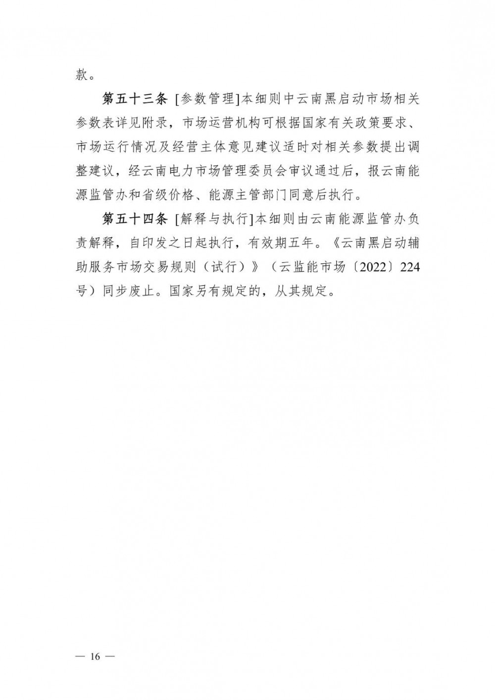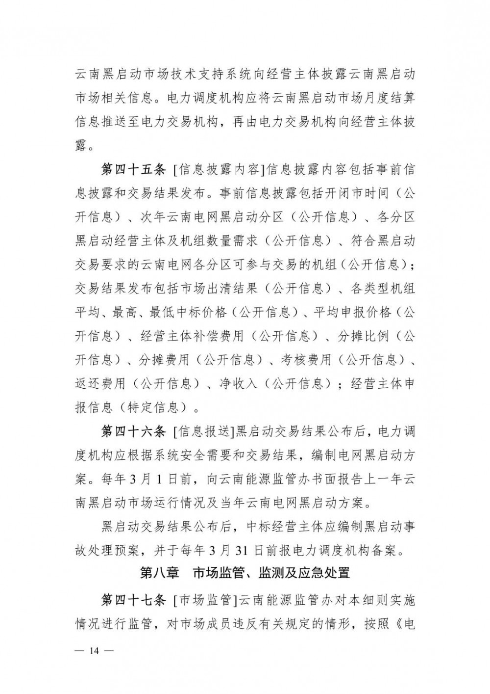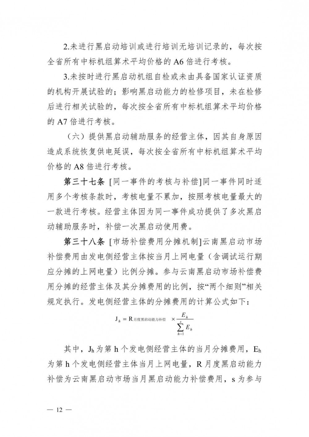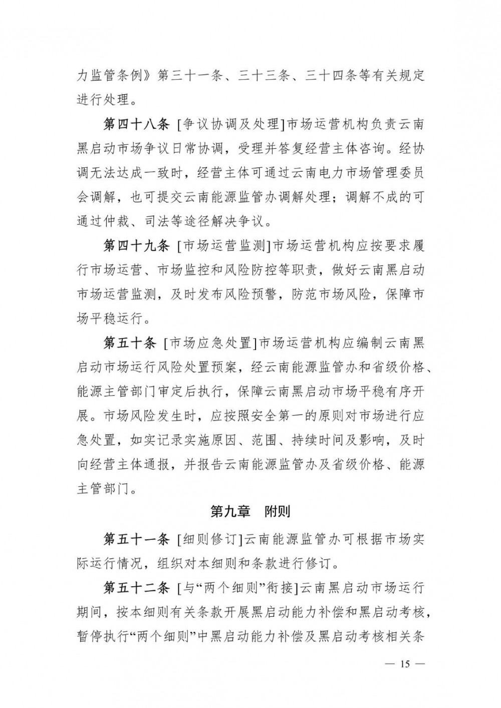 国家能源局云南监管办公室 云南省发展和改革委员会 云南省能源局关于印发《云南调频辅助服务市场实施细则》《云南黑启动辅助服务市场实施细则》的通知