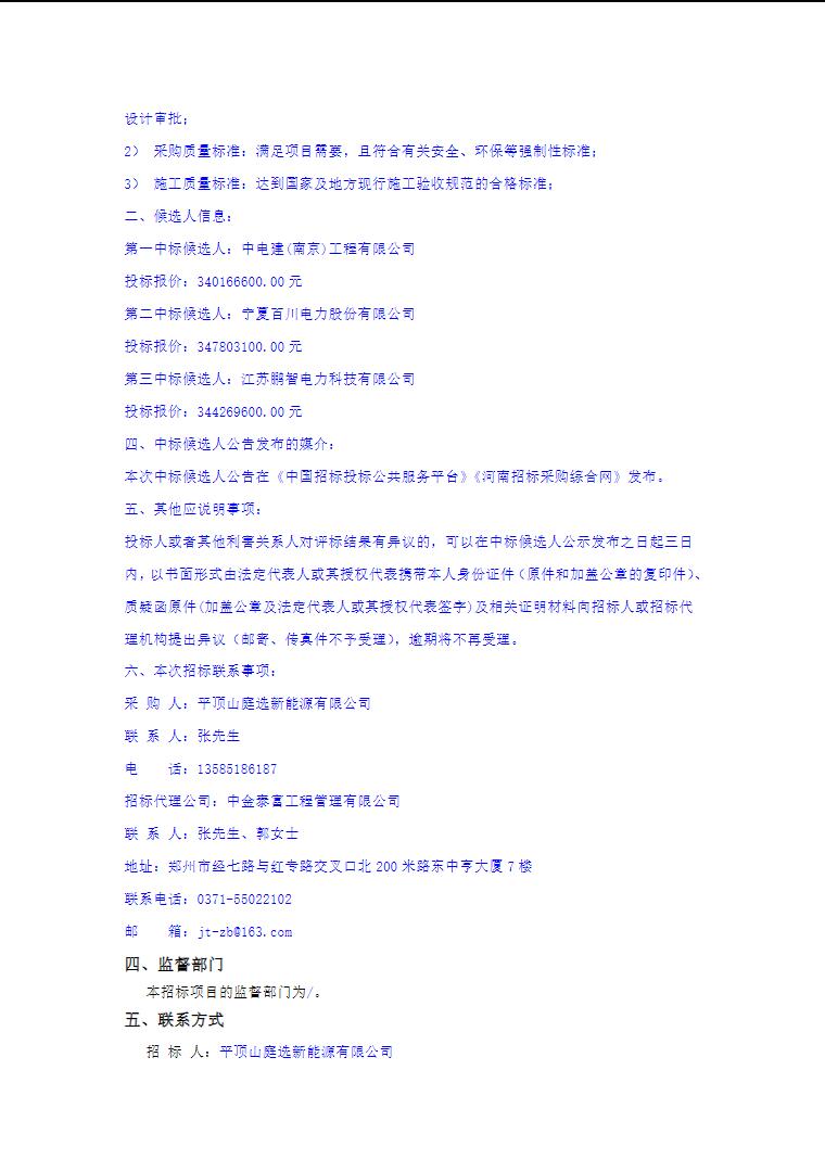 第一中标候选人为中电建(南京)工程有限公司,投标报价34016.66万元,折合单价0.8504元/Wh;第二中标候选人为宁夏百川电力股份有限公司,投标报价34780.31万元,折合单价0.8695元/Wh;第三中标候选人为江苏鹏智电力科技有限公司,投标报价34426.96万元,折合单价0.8607元/Wh。
