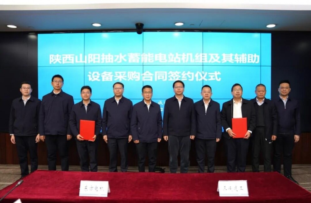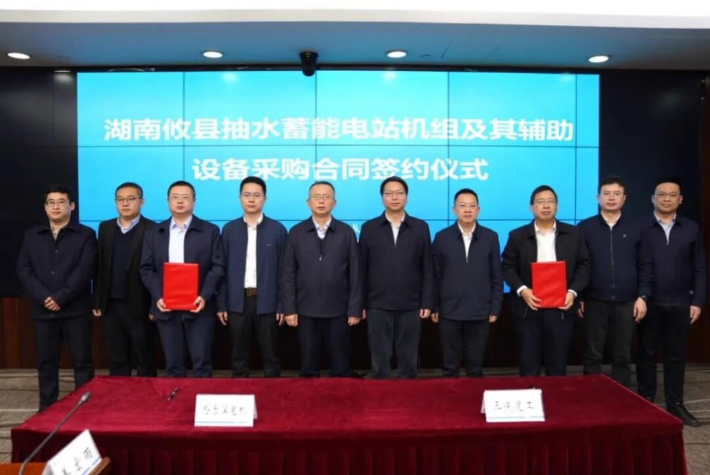 2025年12月19日,湖南攸县、陕西山阳抽水蓄能电站机组采购合同签约仪式在成都举行。三峡建工董事长、党委书记高鹏,哈尔滨电机董事长、党委书记王贵,东方电机总经理、党委副书记张天鹏出席签约仪式并致辞,三峡建工副总经理、党委委员唐波主持仪式。