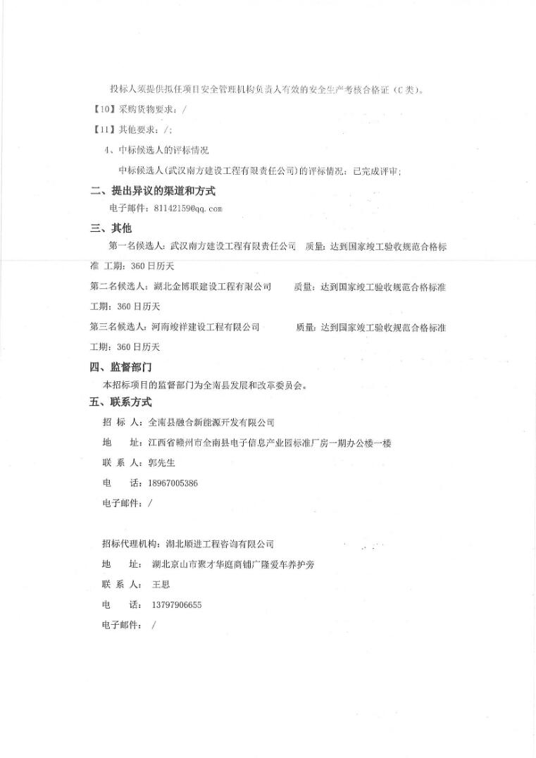 第一中标候选人为武汉南方建设工程有限责任公司,投标报价为35030.634112万元,折合单价1.1677元/Wh。